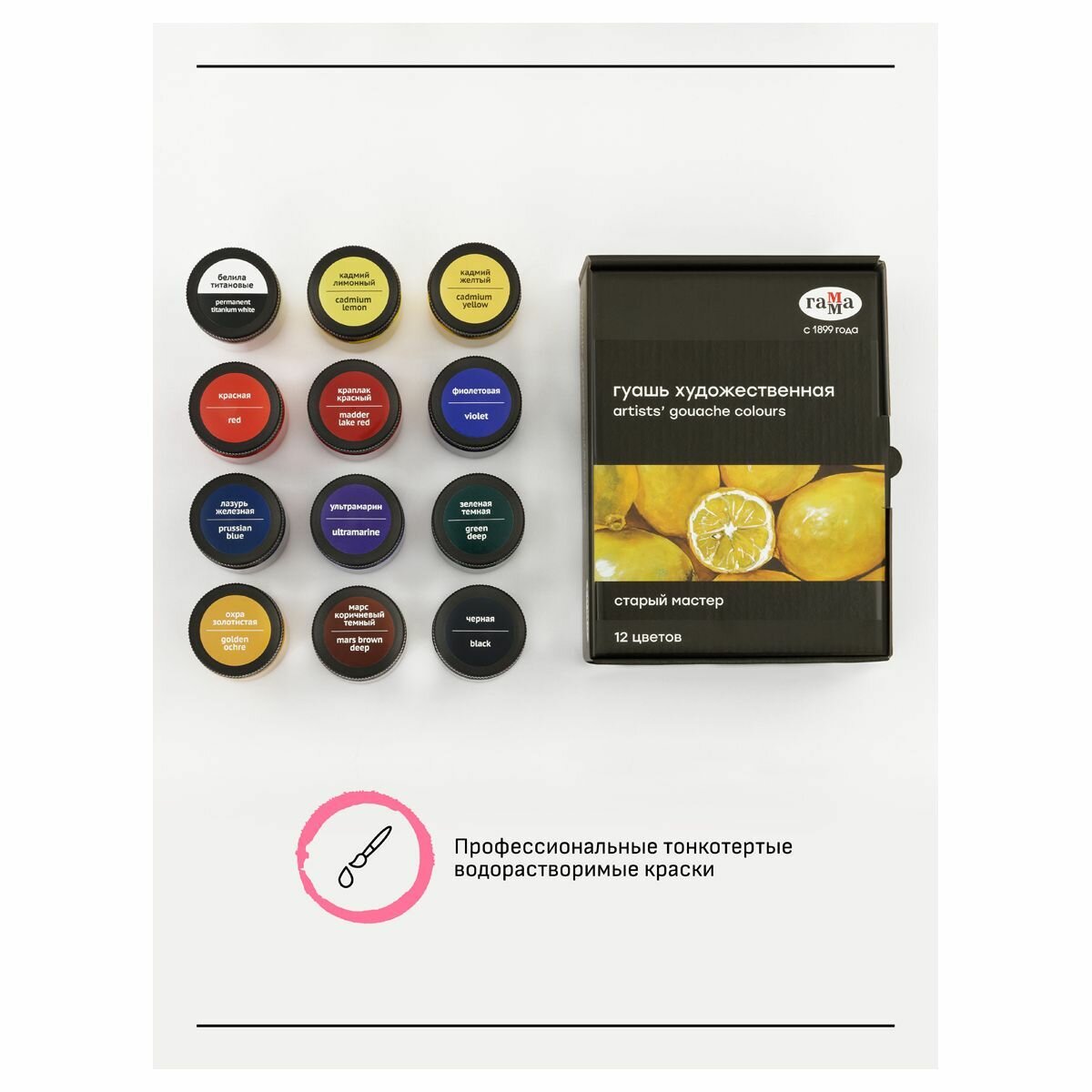 Купить Гуашь художественная Гамма "Старый мастер", 12 цветов, 40мл/банка