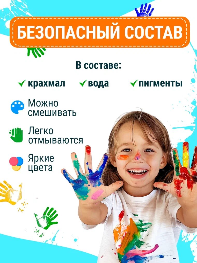 СохранитьПальчиковые краски для малышей, безопасные, набор 6 цветов, с раскрасками "Рисуем пальчиками" 4 штуки для детей интересное: