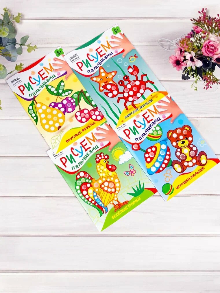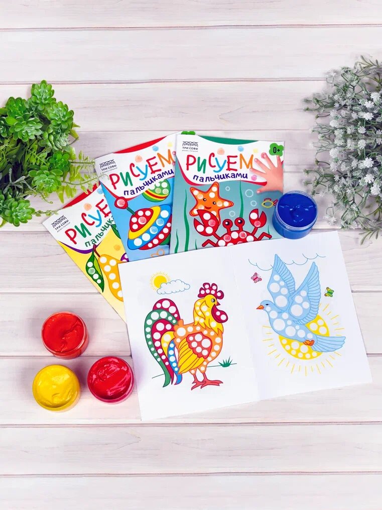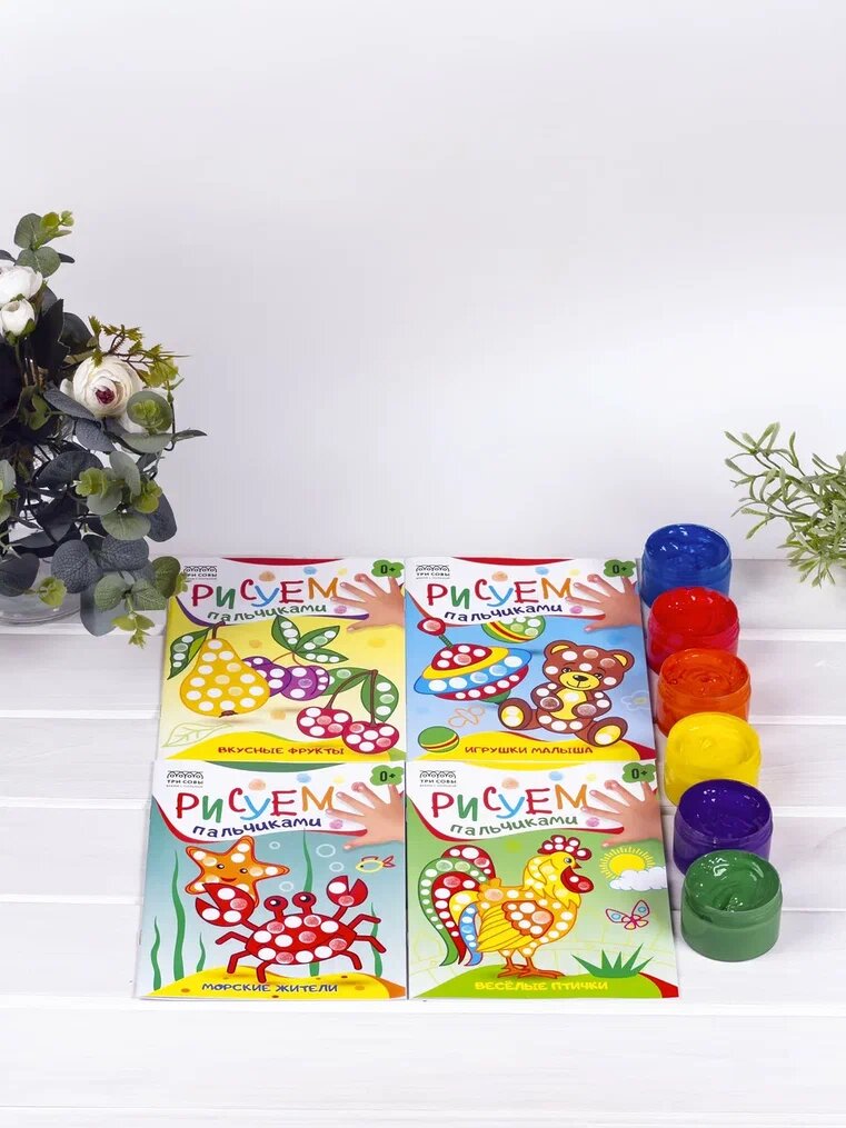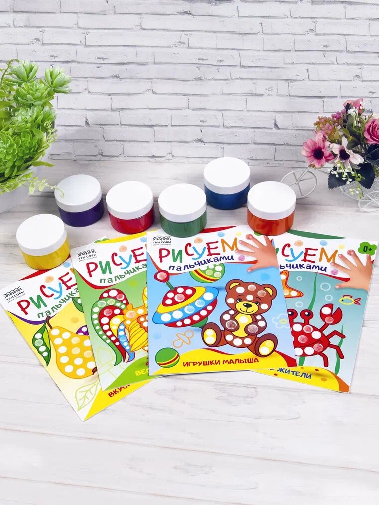 Купить Пальчиковые краски для малышей, безопасные, набор 6 цветов, с раскрасками "Рисуем пальчиками" 4 штуки для детей