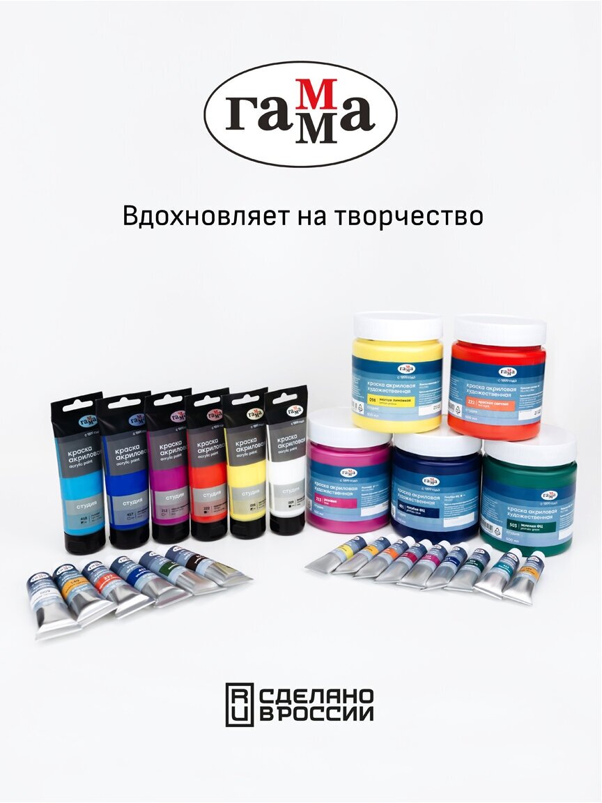 Краска акриловая художественная для рисования Гамма "Студия" профессиональная белая (белила титановые), туба 75 мл / Акрил для живописи и творчества для художников