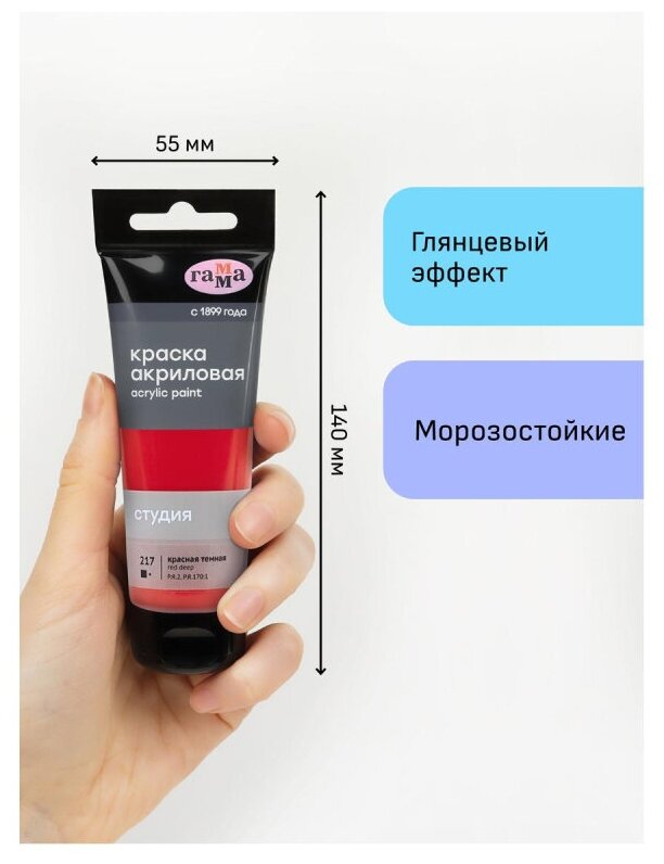 Купить Краска акриловая художественная Гамма "Студия", 75мл, пластиковая туба, красная темная (280220217)