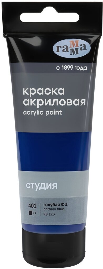 Купить Краска акриловая художественная Гамма "Студия", 75мл, пластиковая туба, голубая фц, 306060
