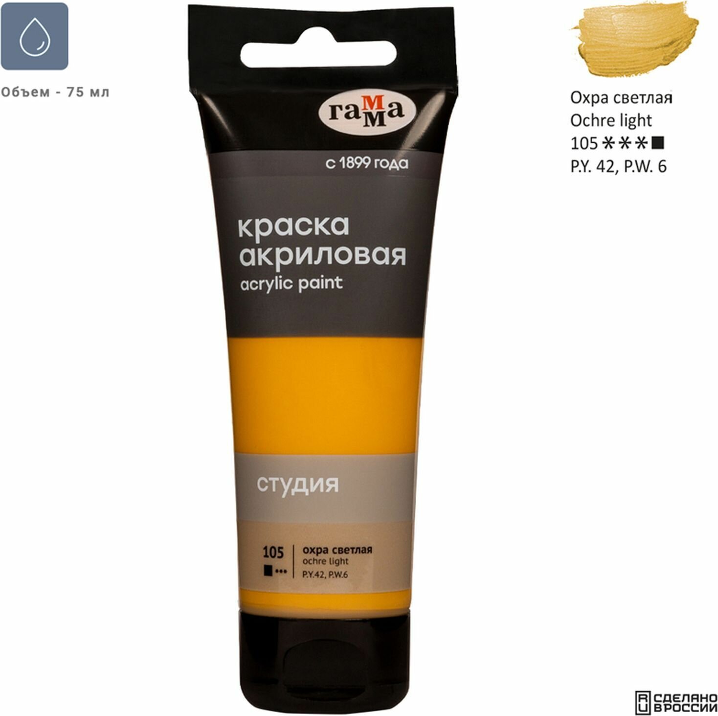СохранитьКраска акриловая художественная Гамма "Студия", туба 75мл, охра светлая (280220105) интересное: