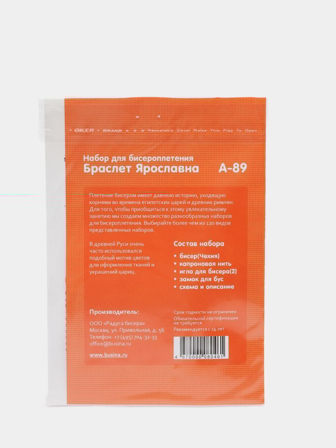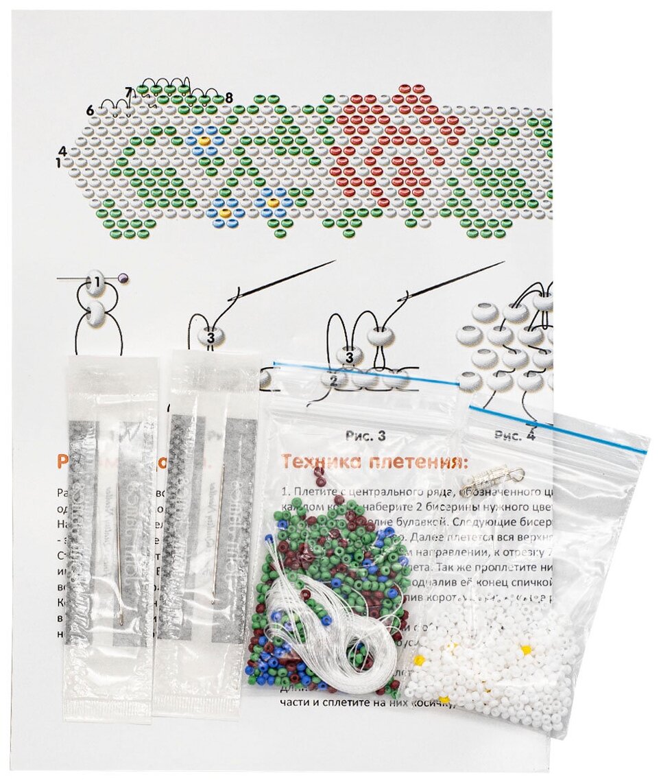 | Комплектация | Бисер (Чехия), капроновая нить, игла, замок, схема, инструкция |