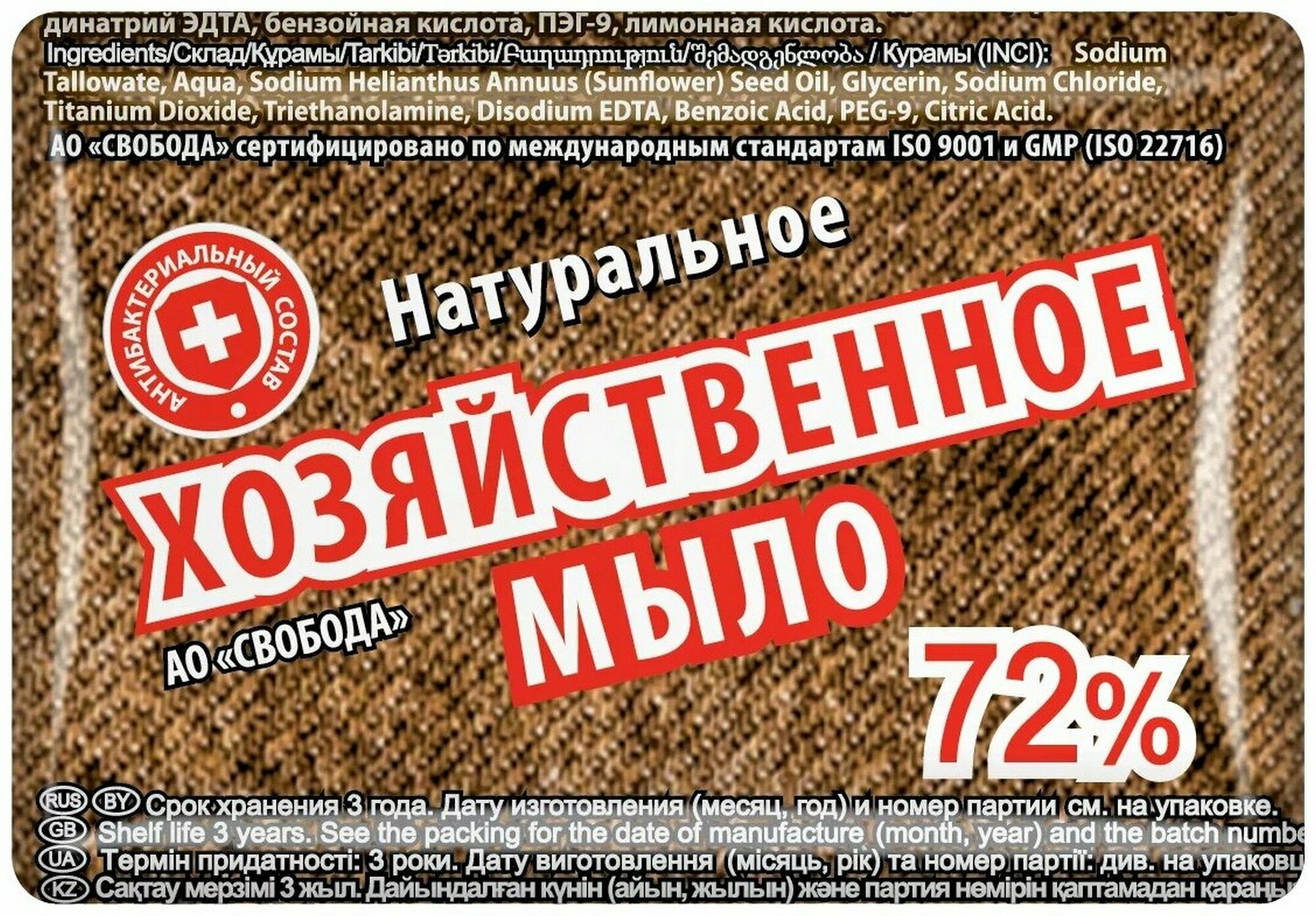 Набор из 3 штук Мыло хозяйственное свобода 72% 150г Натуральное концентрированное в обертке