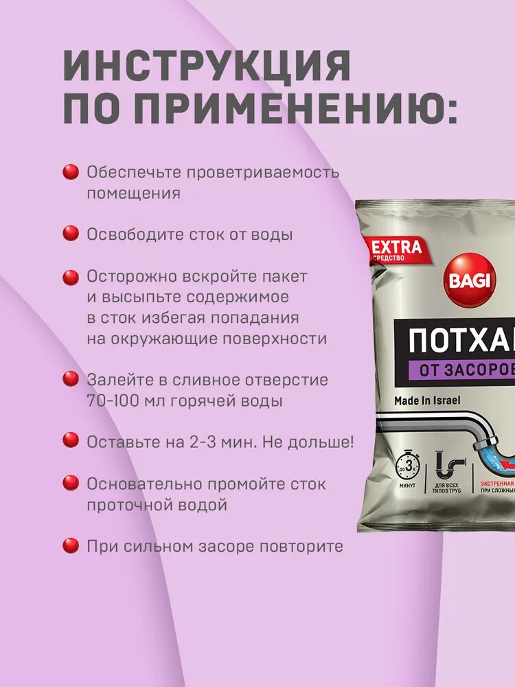 | Подробная комплектация | Средство от засоров Bagi Потхан, 70 гр. |