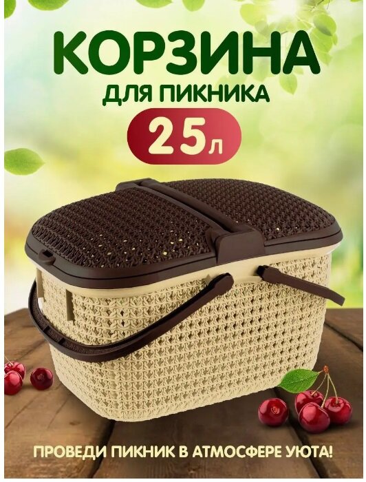 Корзина для пикника паола 25 л кремовая elfplast