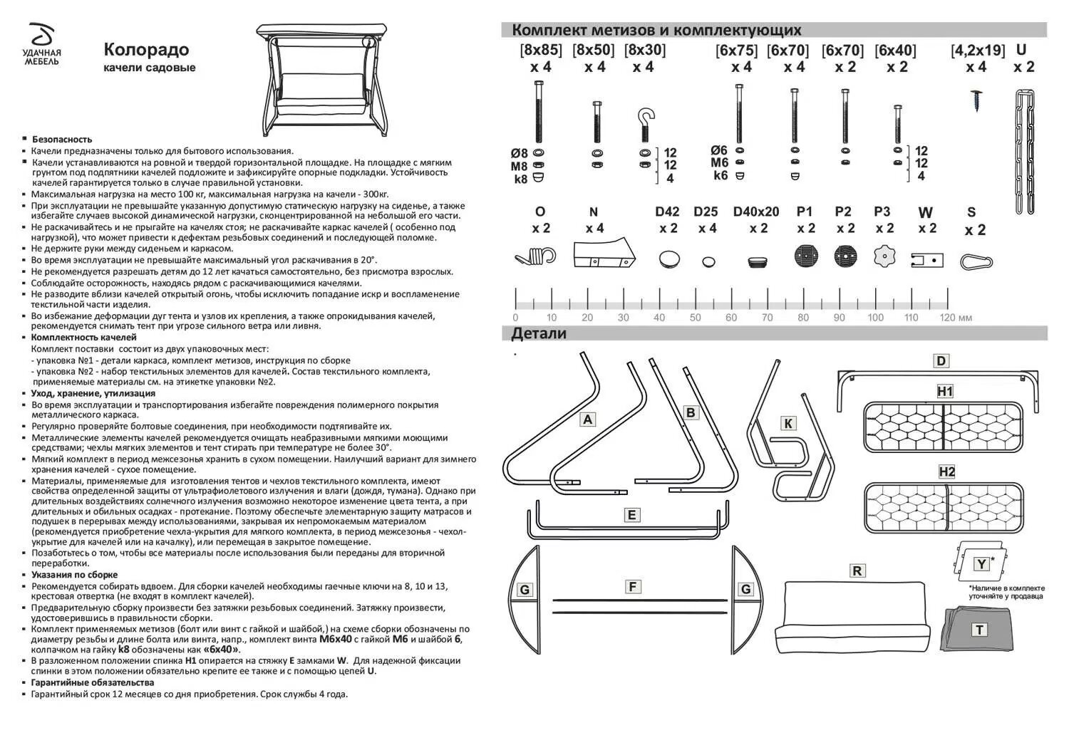 | Ширина качелей | 136 см |