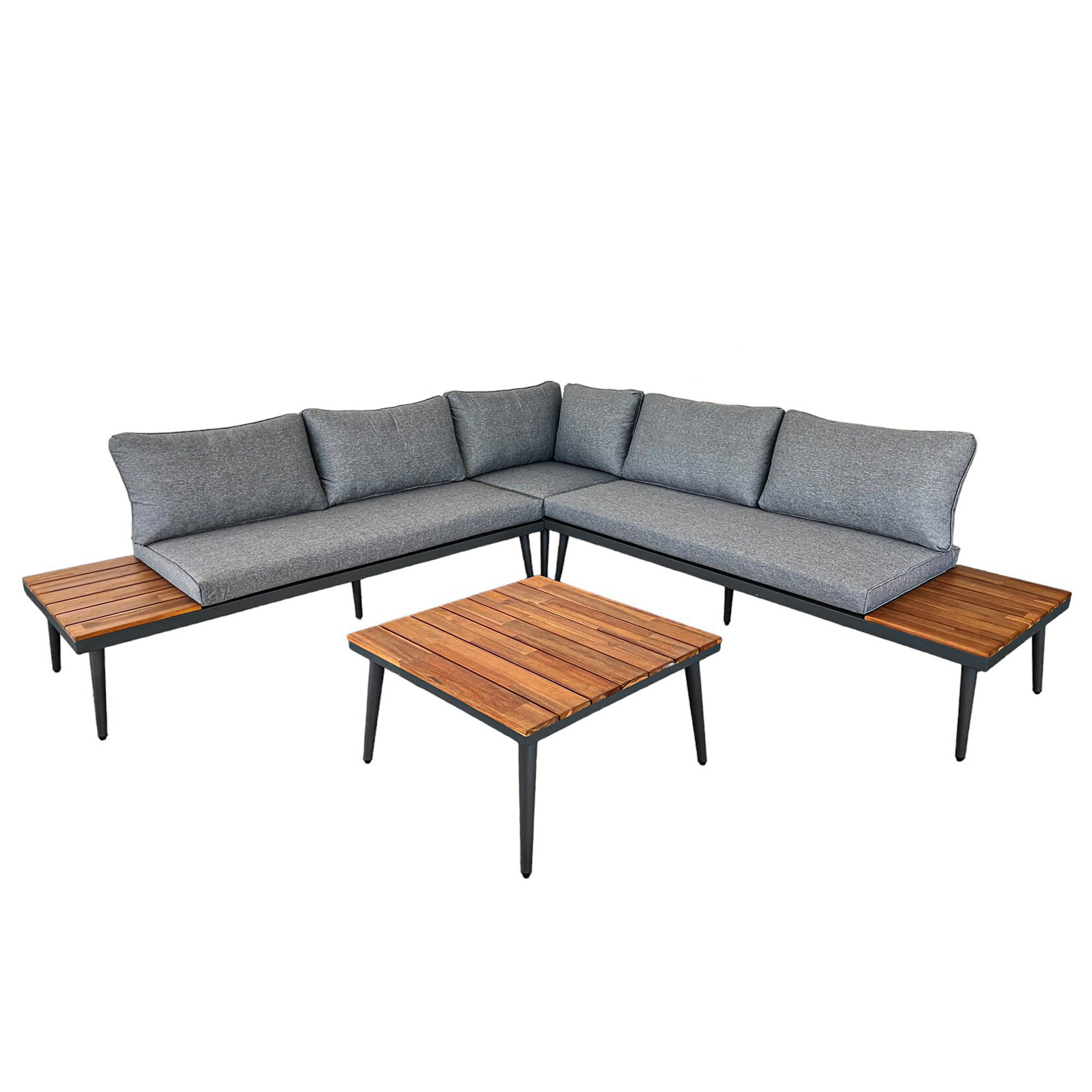 Купить Набор садовой мебели MyHome, массив акации, металлический каркас, 6 человек, серый