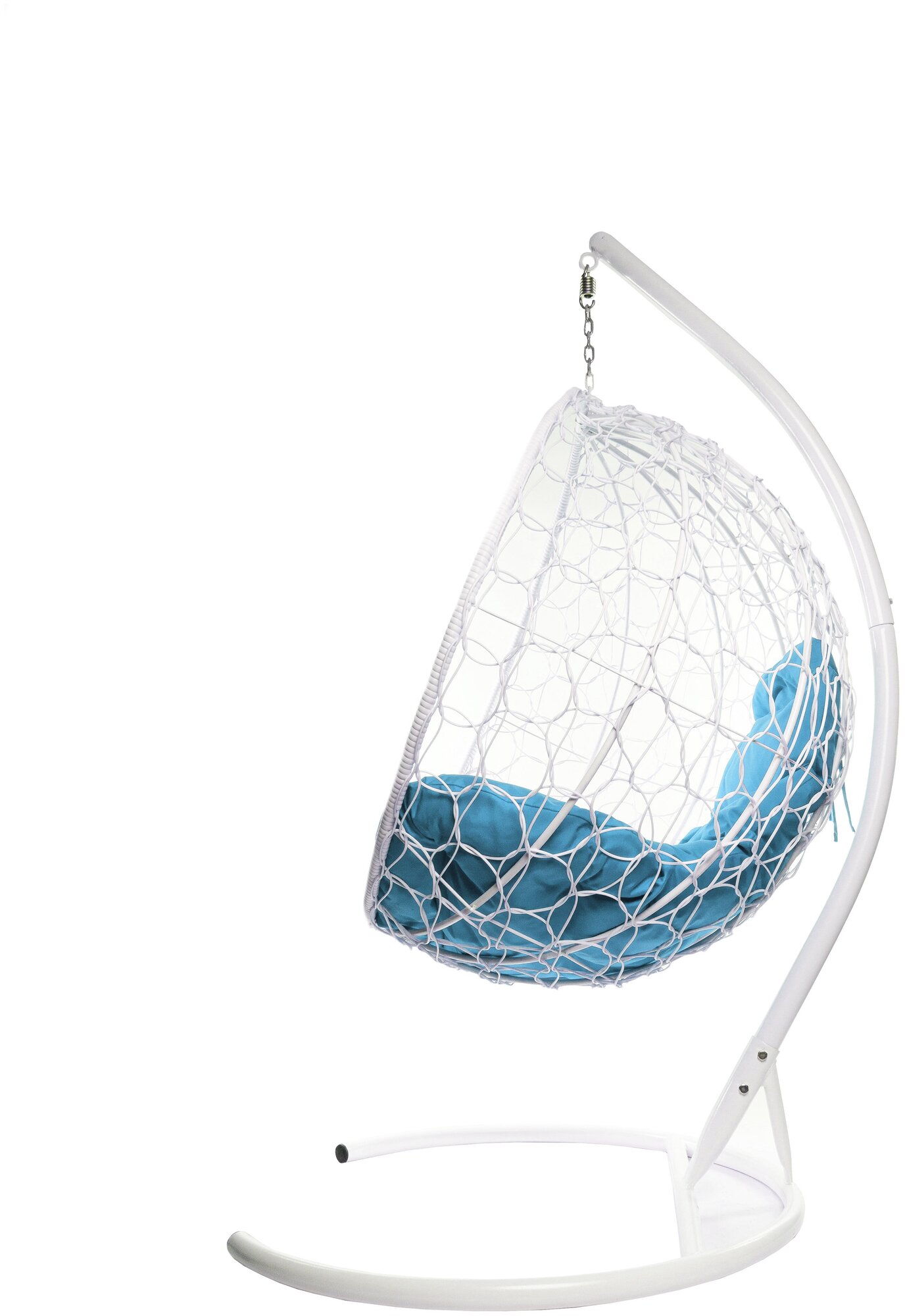 Подвесное кресло Круг ротанг белое, голубая подушка