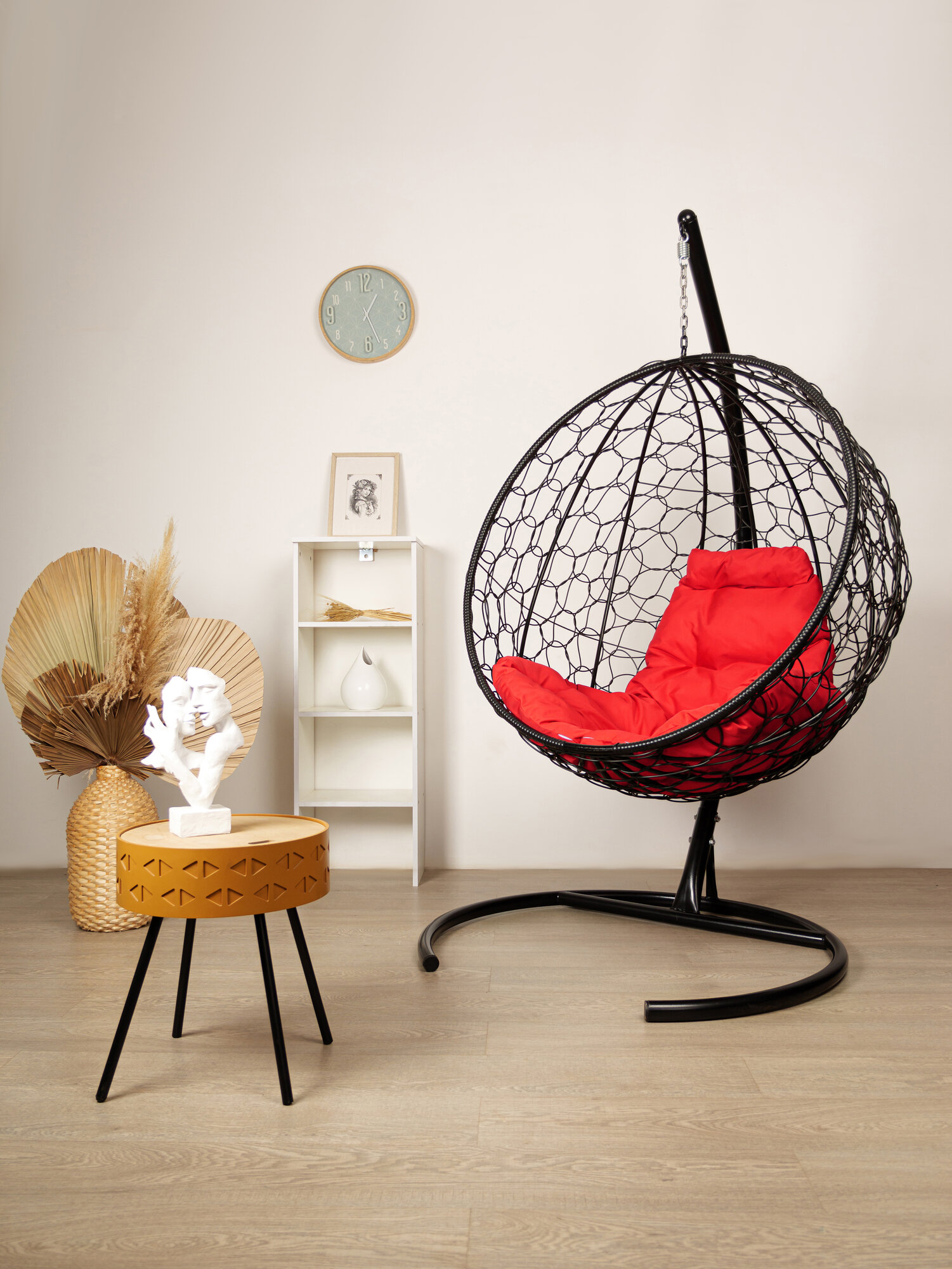 СохранитьПодвесное кресло - кокон с ротангом Круг чёрное, красная подушка интересное: