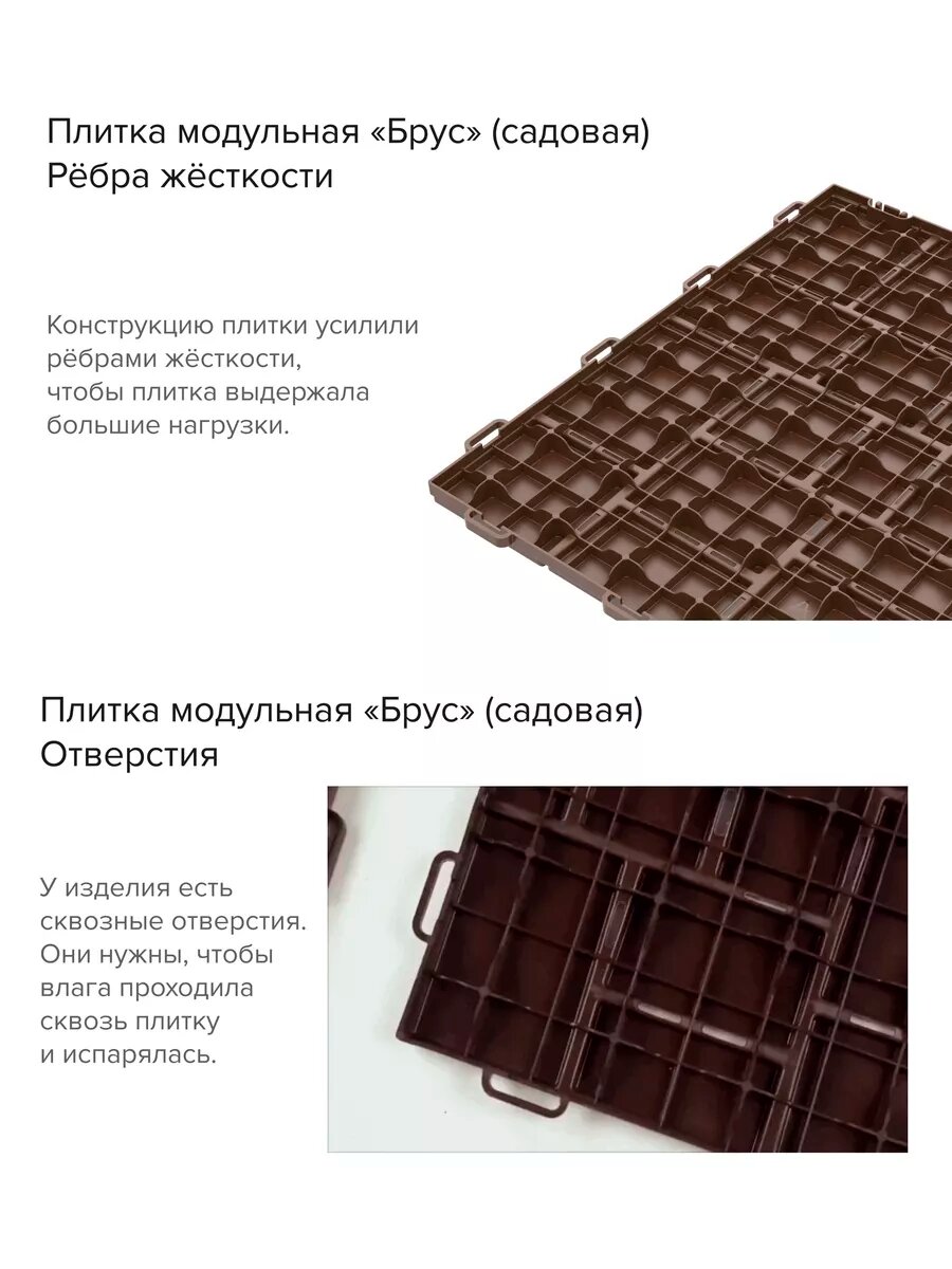 Плитка модульная Брус садовая (400x300x15мм) 9шт,1м2 шоколад интересное: