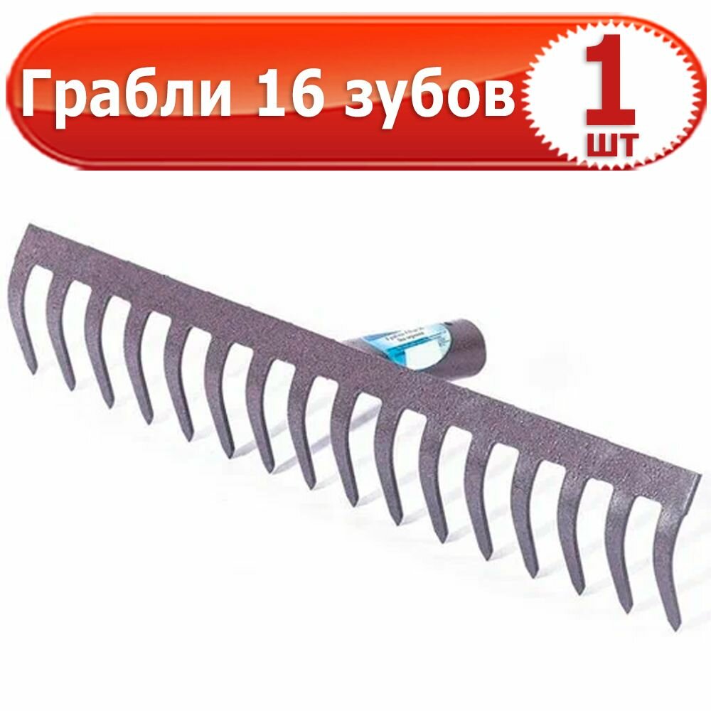 Грабли прямые, прямой зубец, 16 зубцов, металлические, тулейка 28 мм, без черенка