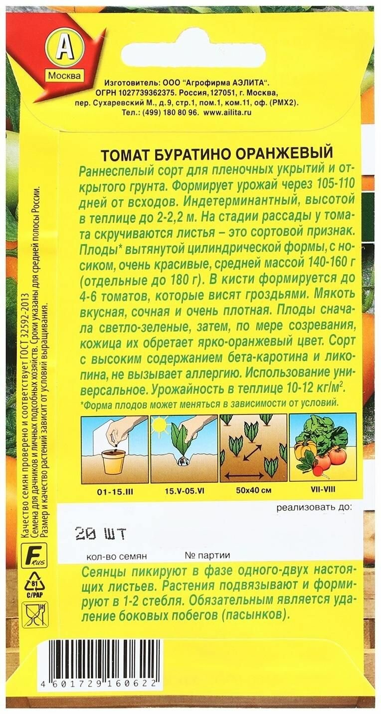 Ниже Вы можете прочитать отзывы на Семена Томат "Буратино", оранжевый, Народный любимец, 20 шт, ознакомится с подробными характеристиками, посмотреть интересные обзоры и фотографии на Семена Томат "Буратино", оранжевый, Народный любимец, 20 шт.