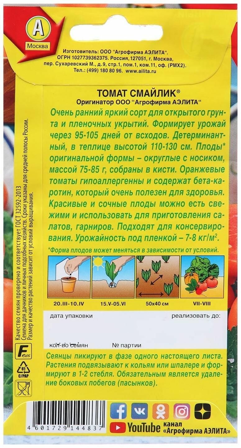 Ниже Вы можете прочитать отзывы на Семена Томат Смайлик ® Р Ц/П 0,2г, ознакомится с подробными характеристиками, посмотреть интересные обзоры и фотографии на Семена Томат Смайлик ® Р Ц/П 0,2г.