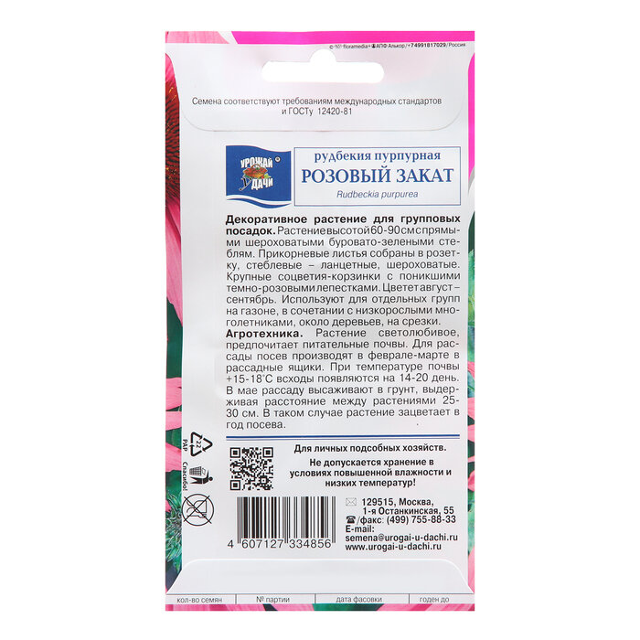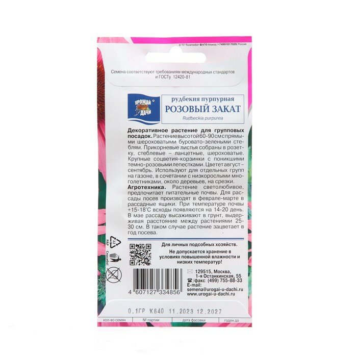 Семена цветов Рудбекия розовый закат, пурпурная, 0,1 г интересное:
