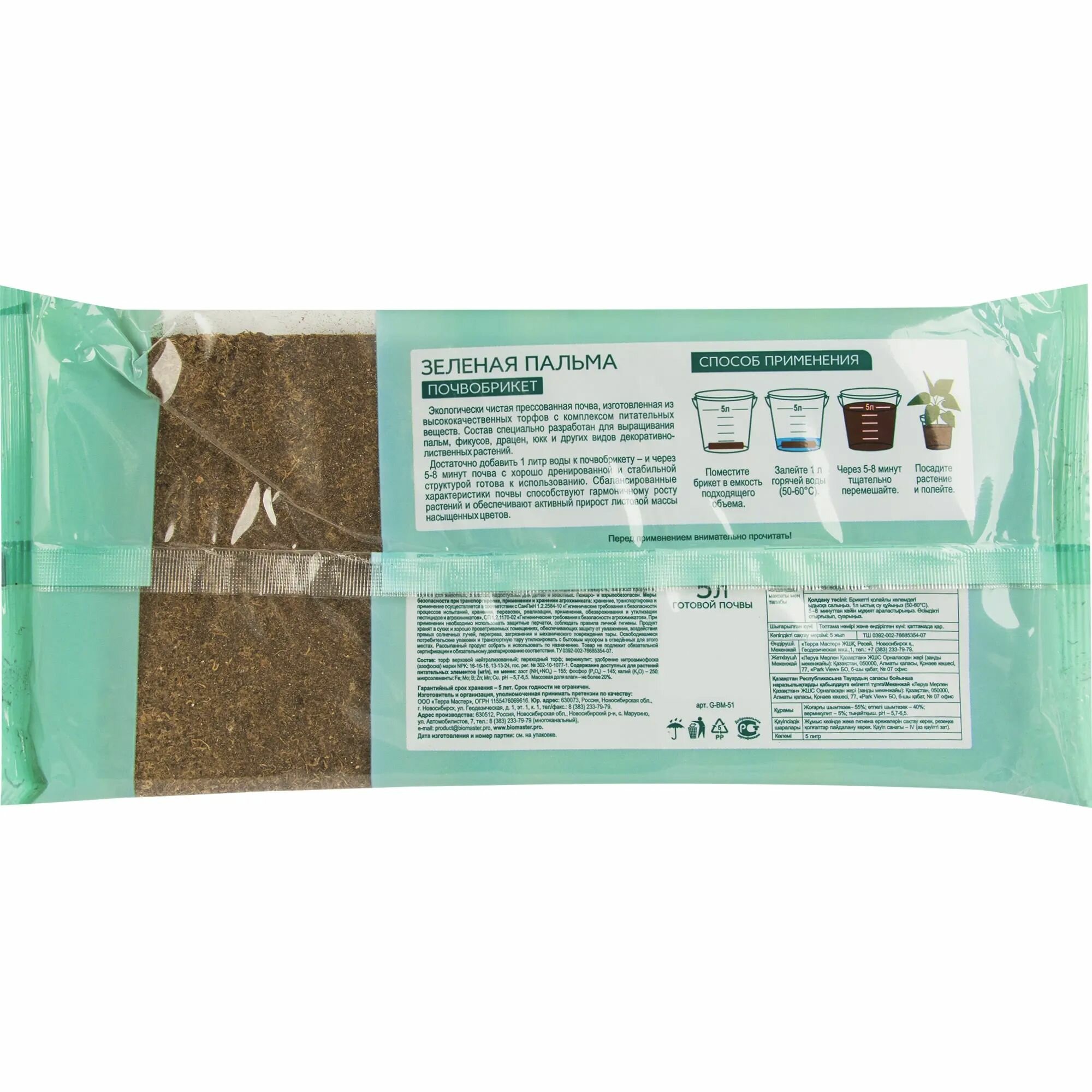 Почвобрикет БиоМастер Зеленая пальма 5л, 3 шт