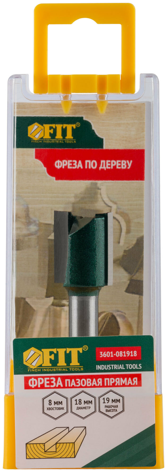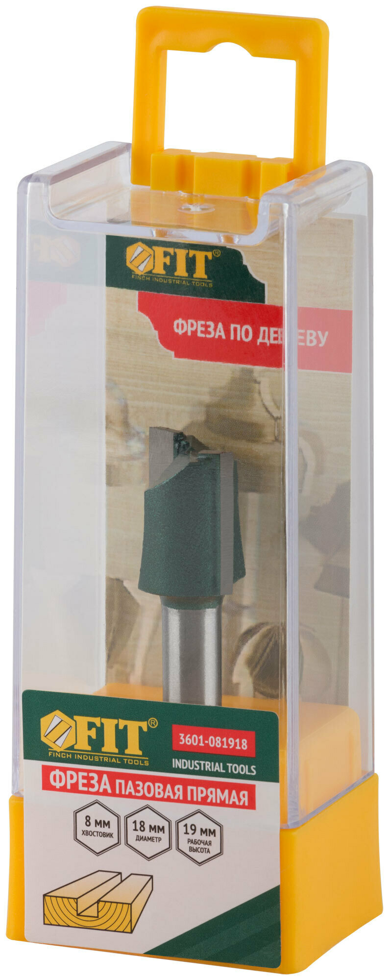 FIT Фреза по дереву пазовая прямая 16 х 19 x 52 мм с двойным лезвием хвостовик 8 мм твердосплавные вставки