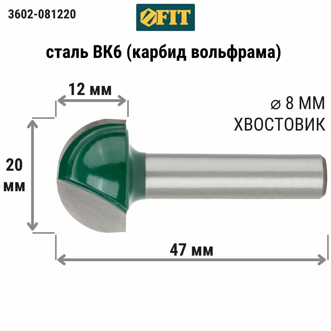 Купить FIT Фреза по дереву пазовая галтельная 20 х 12 х 47 мм хвостовик 8 мм твердосплавные вставки