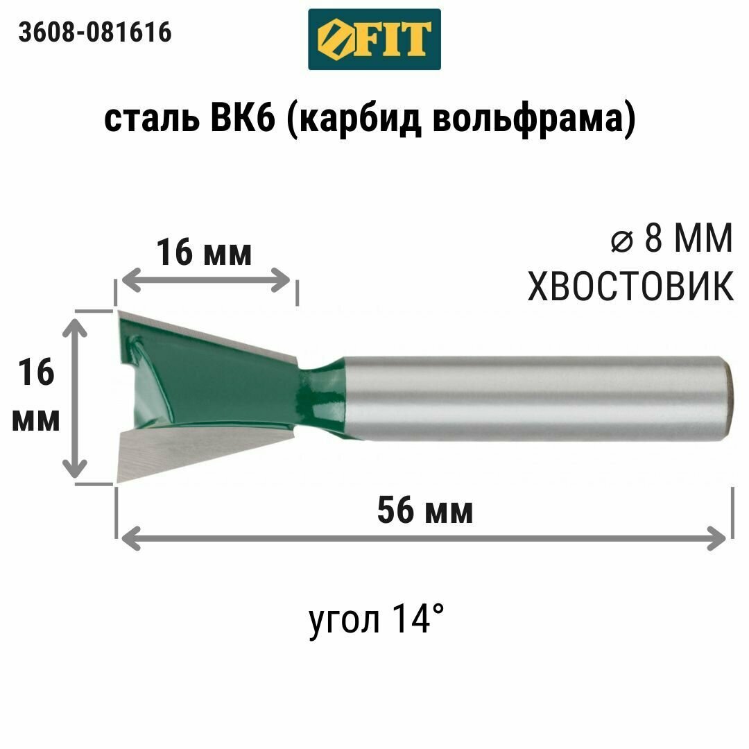 СохранитьФреза пазовая Ласточкин хвост (16х16х56 мм) FIT 3608-081616 интересное: