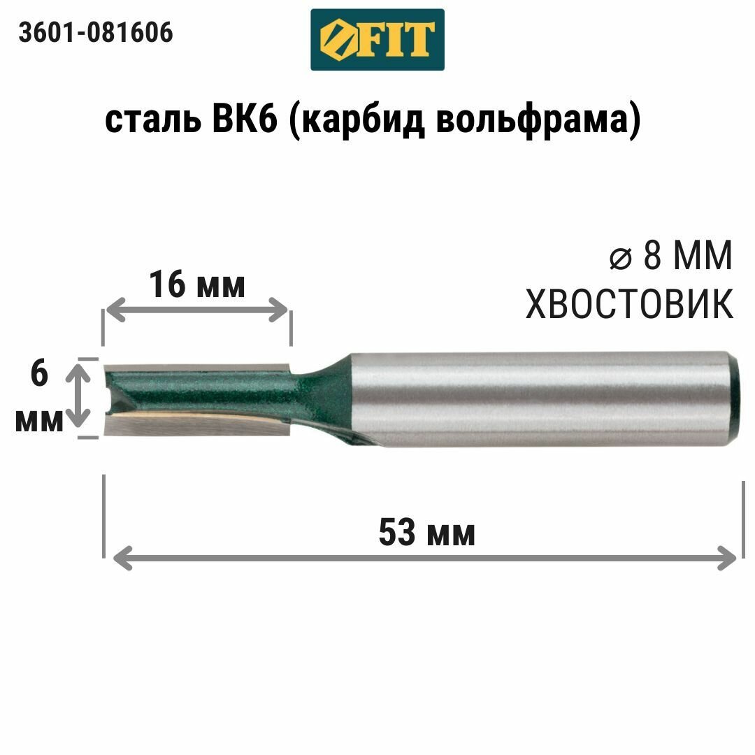 Купить Фреза пазовая прямая с двойным лезвием 6x16x53 мм FIT 3601-081606