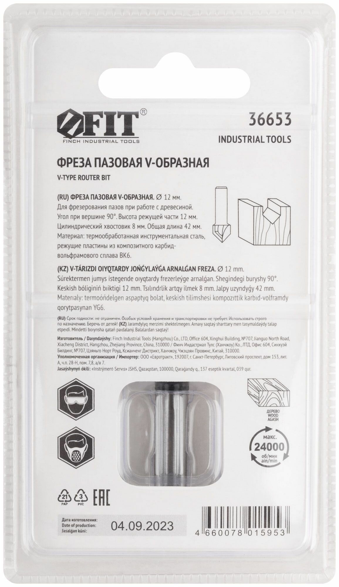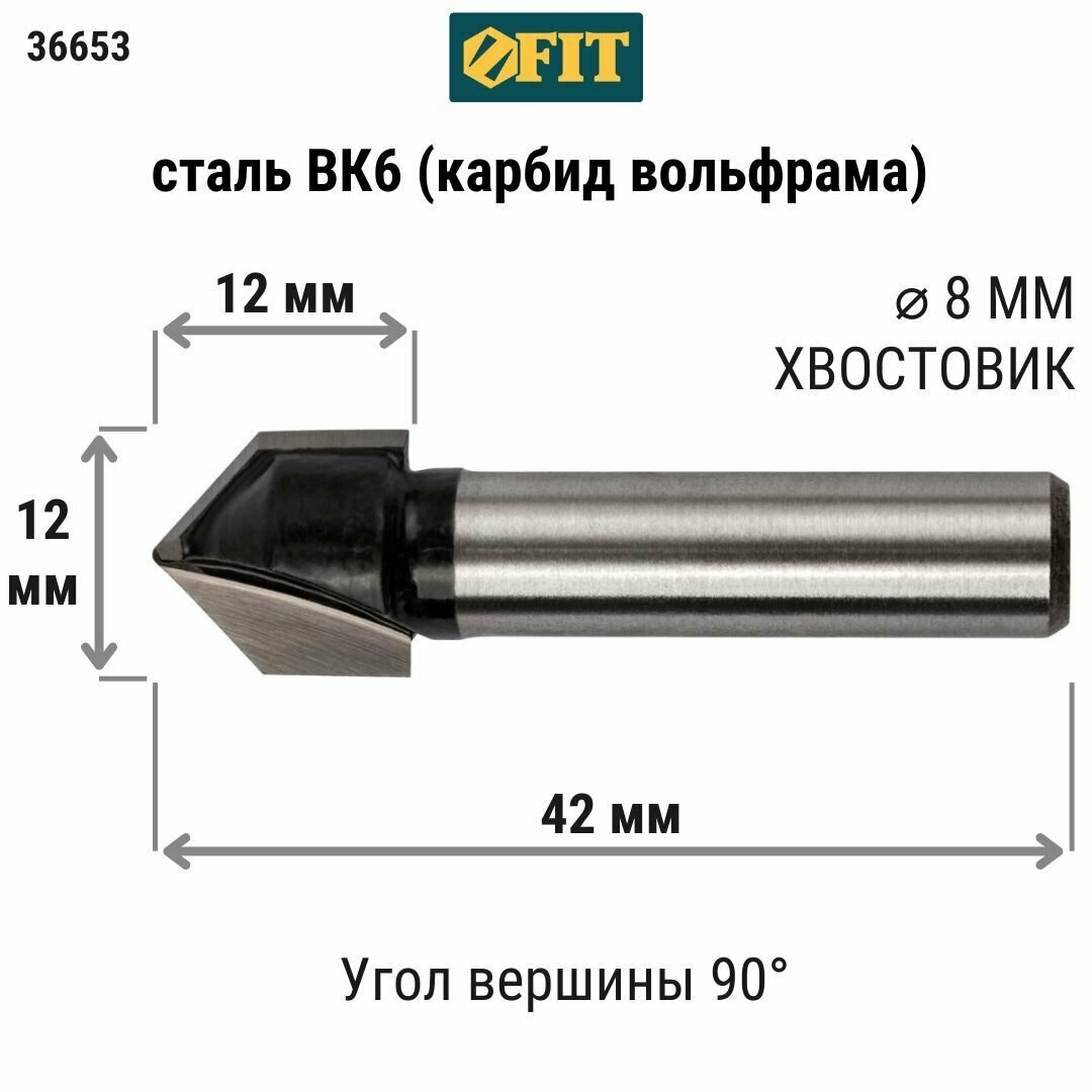 Купить Фреза FIT пазовая V-образная 12х12х42мм (36653)