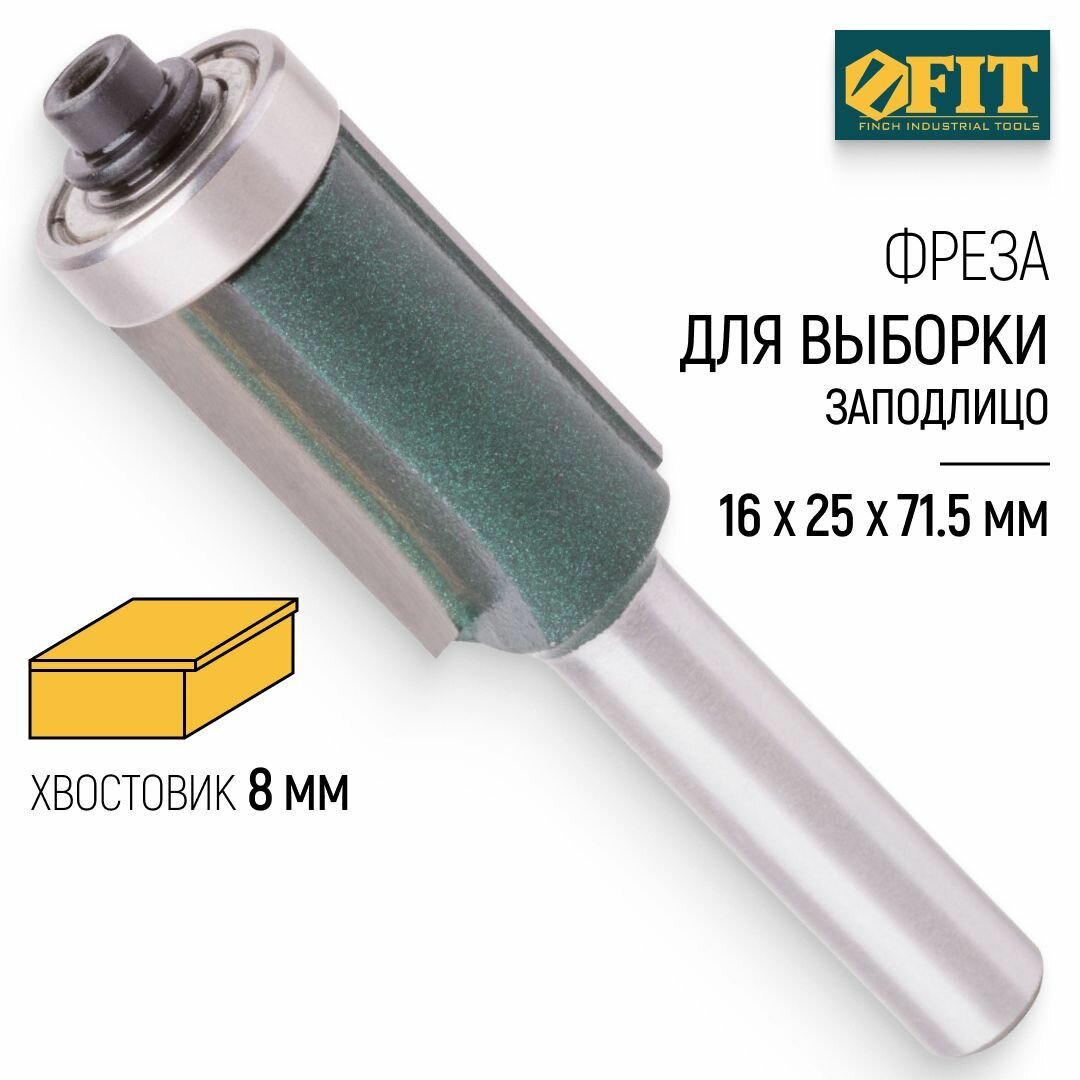Купить Фреза FIT 3604-082516 для выборки заподлицо с нижним подшипником DxHxL=16х25х71,5мм