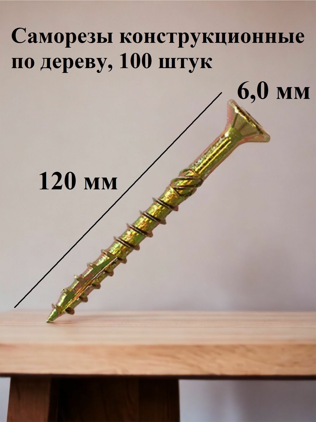 Саморез конструкционный по дереву 6*100 HIMTEX потайной