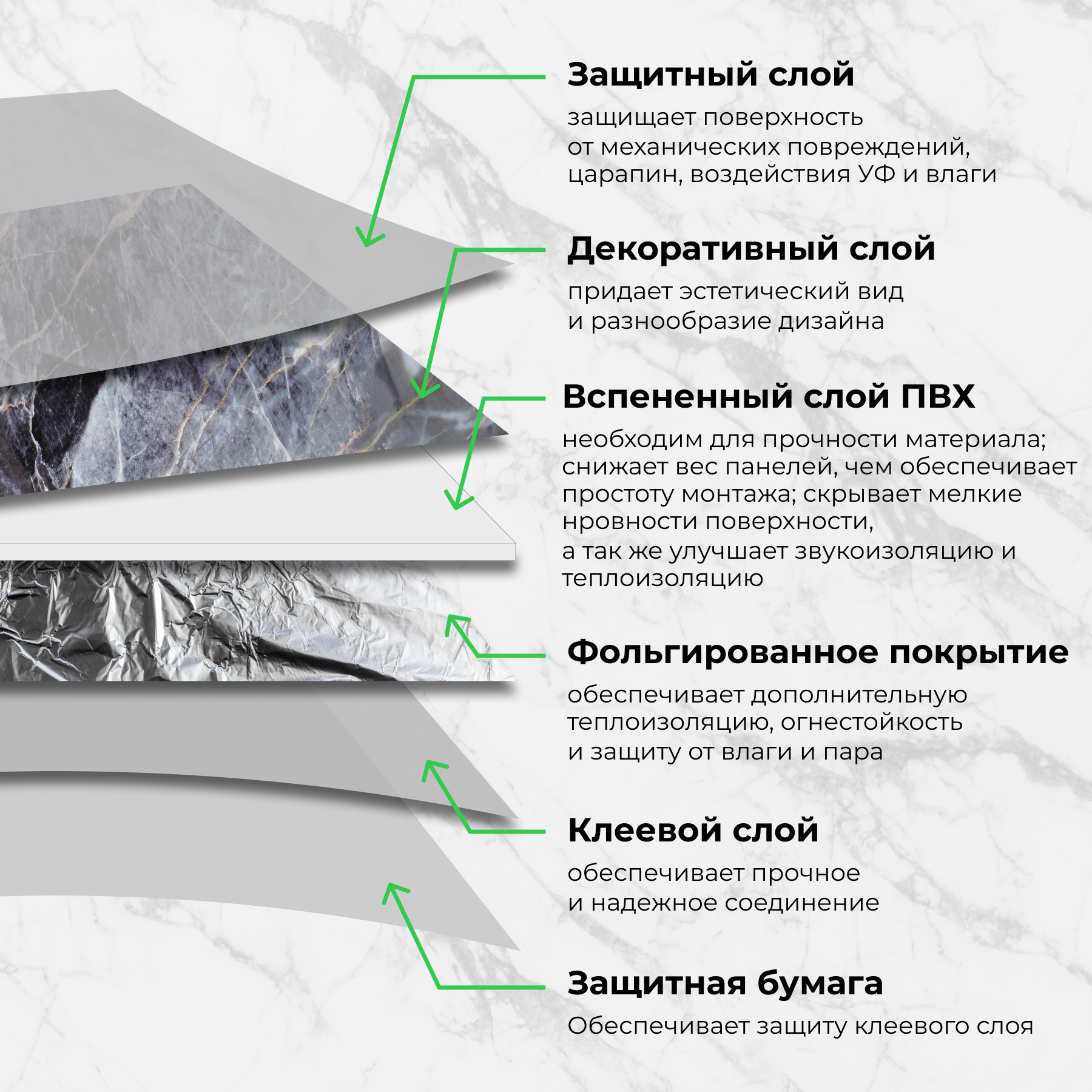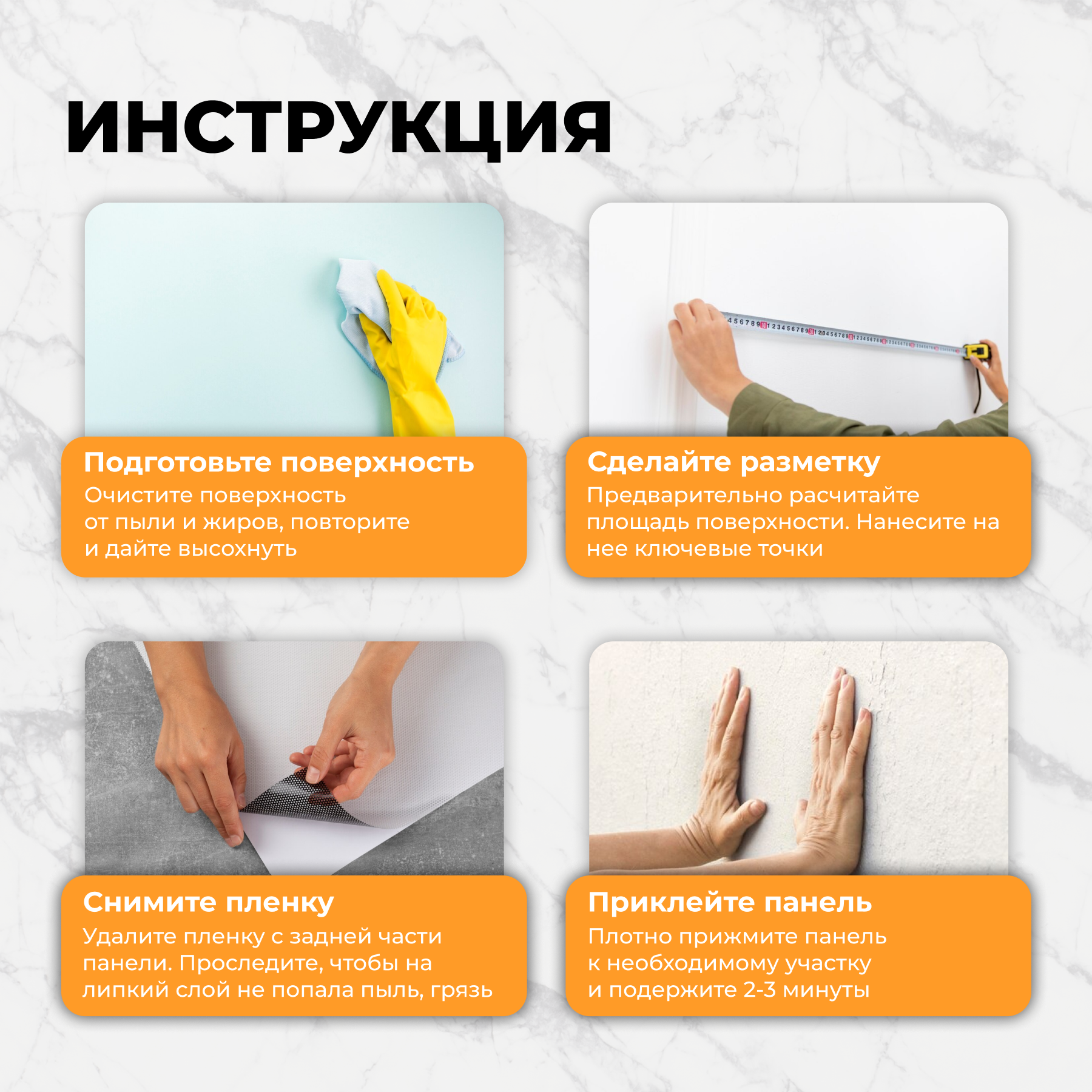 | Подробная комплектация | Самоклеящиеся стеновые панели "Белый мрамор" - 18 шт |