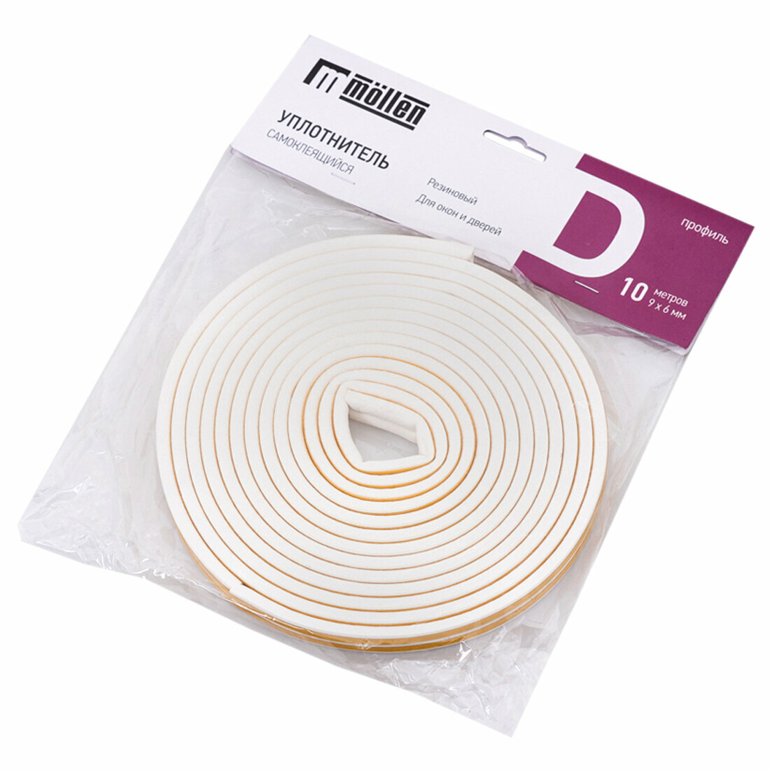 Купить Уплотнитель самоклеящийся D-профиль 9*8 мм, белый, 10 метров . Утеплитель для дверей и окон. 4WALLS
