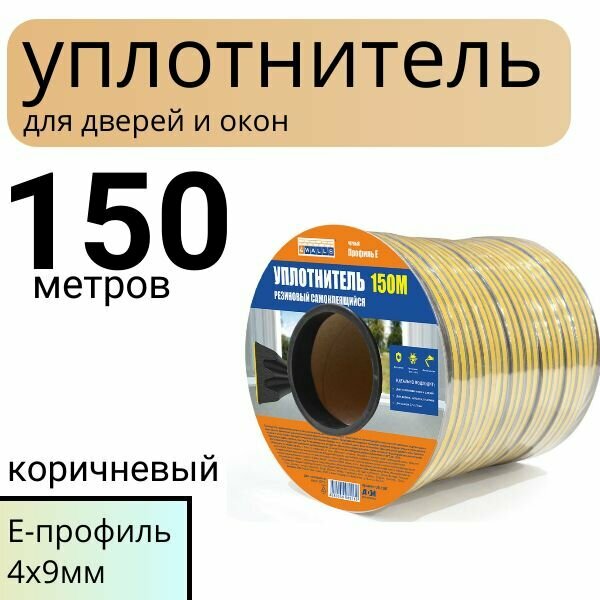 Уплотнитель для дверей и окон самоклеящийся 4WALLS E-профиль 4x9мм, 150м, коричневый URK150E