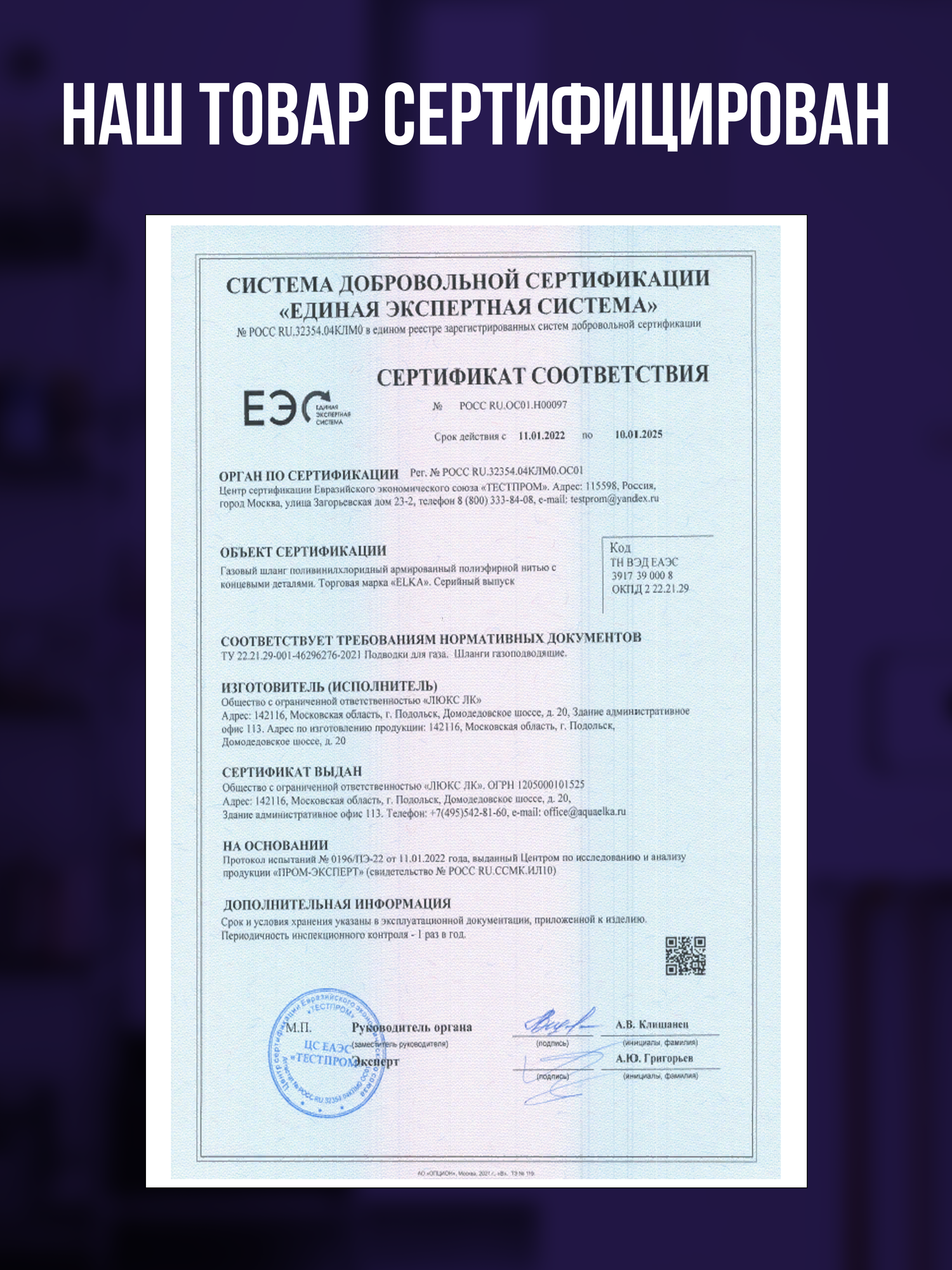 Шланг для газовых приборов 1,5 м ПВХ армированный ELKA 3/4" г/ш (в/н) / Шланг газовый 150 см