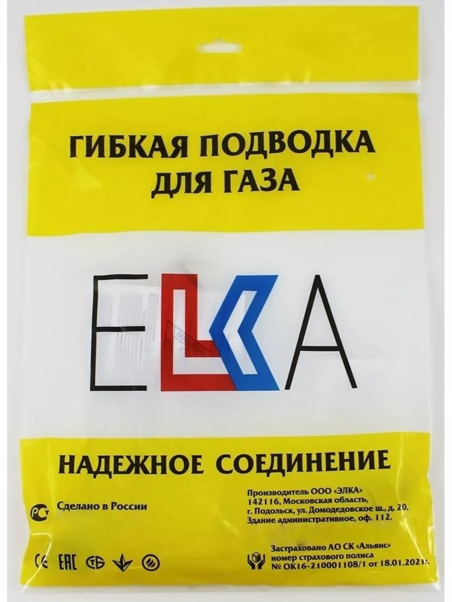 Подводка для газа / Шланг газовый / Подводка для газовых систем 3/4 г/г 1,2 м ELKA 13*19мм