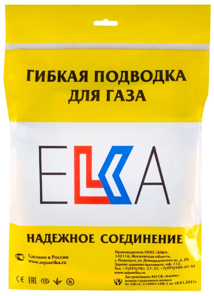 Подводка для газа / Шланг газовый / Подводка для газовых систем 3/4 г/г 1,2 м ELKA 13*19мм