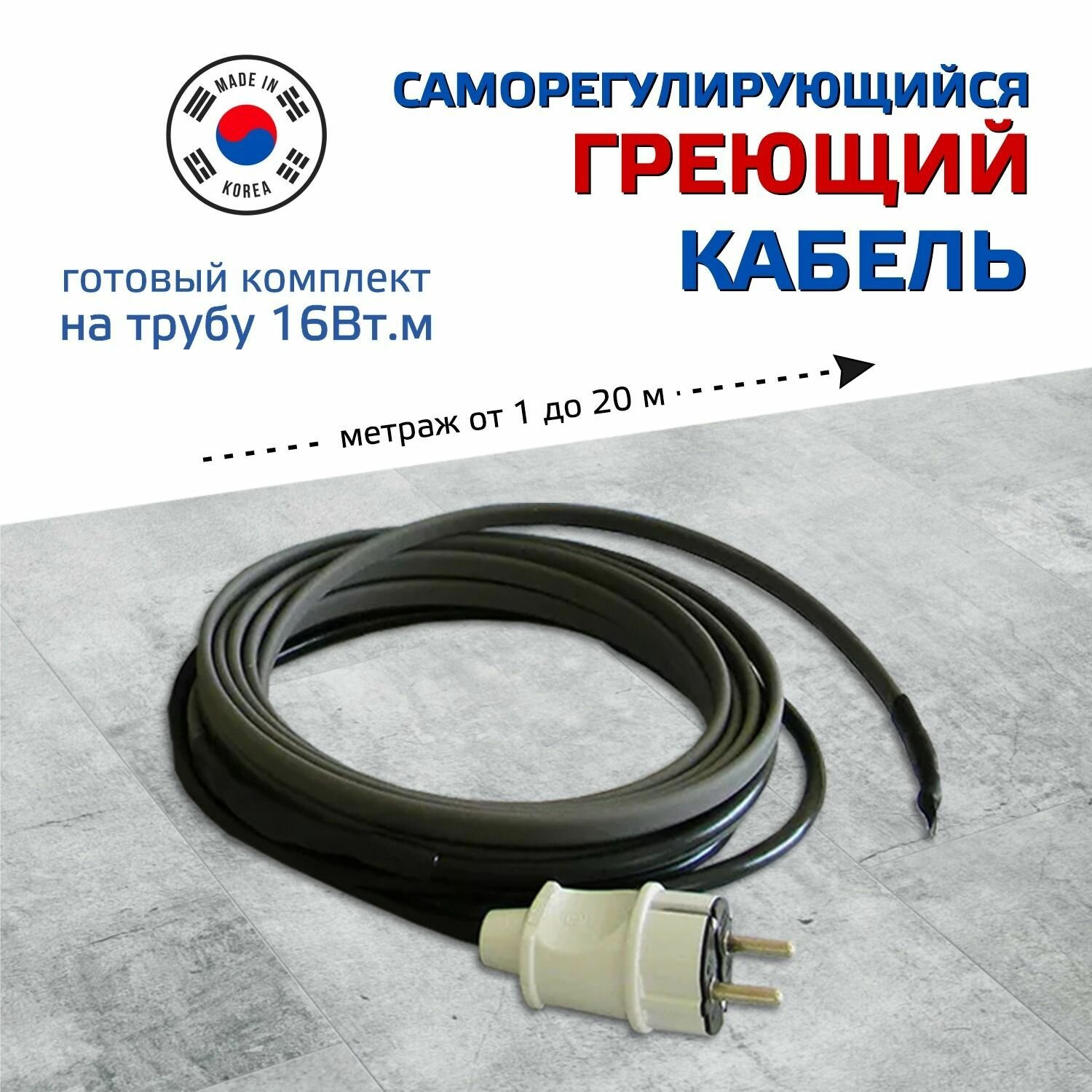 СохранитьГотовый комплект греющего кабеля саморегулирующегося Samreg 16-2 (6м) для обогрева труб снаружи 16Вт интересное: