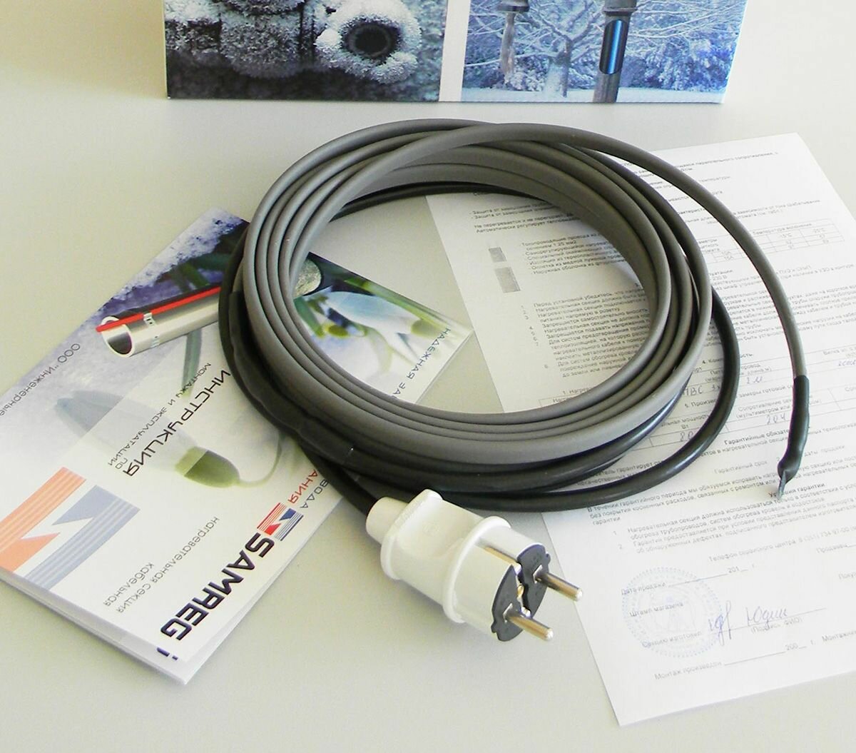 | Подробная комплектация | Греющий кабель с питающим проводом и вилкой на конце, инструкция |