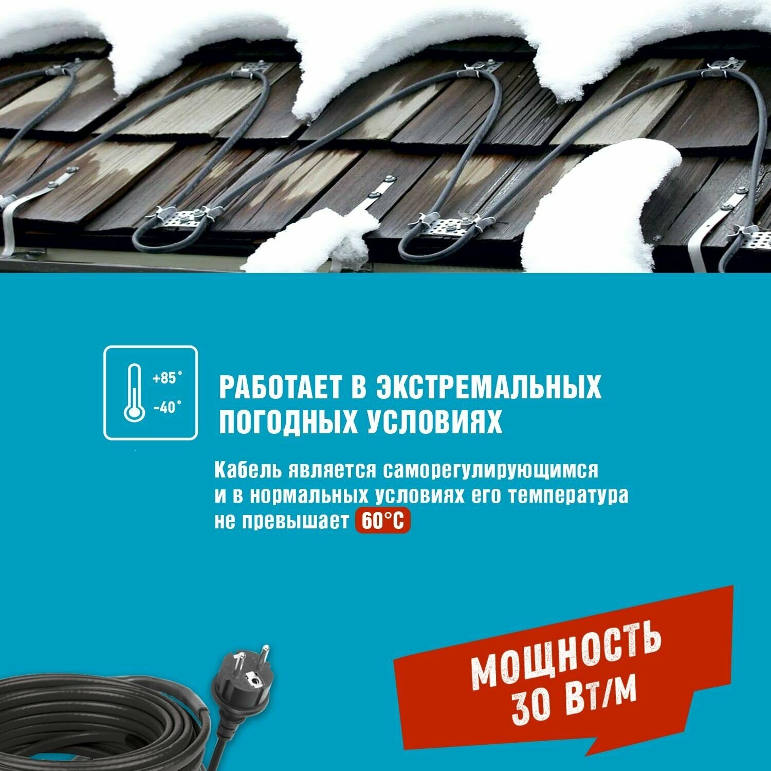 Комплект греющего кабеля REXANT 30 Вт/м для установки на трубу, кровлю, водосток, 220 В, 15 м