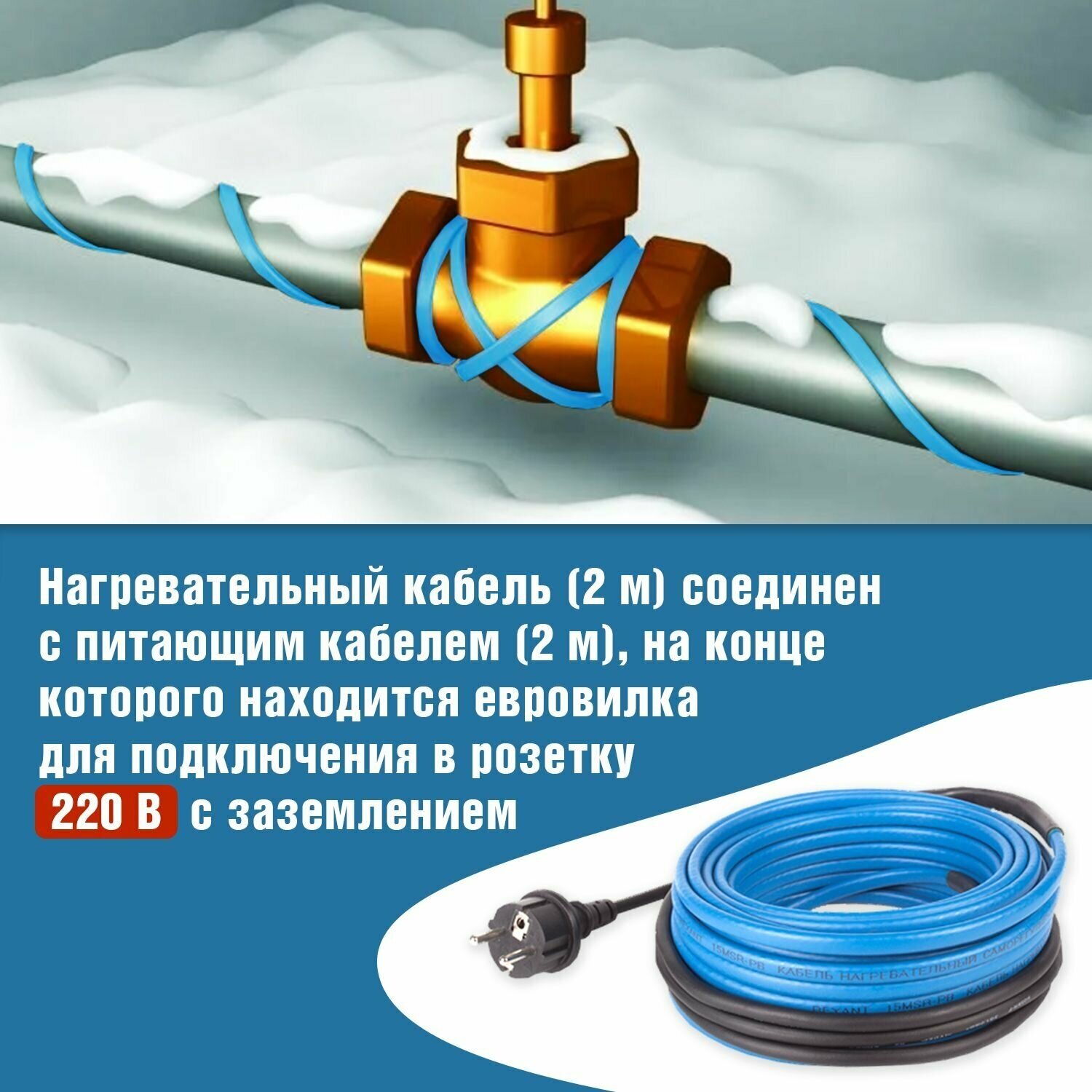 Греющий кабель обогрев люкс Греющий саморегулирующийся кабель в трубу 6 метров Обогрев Люкс с сальником