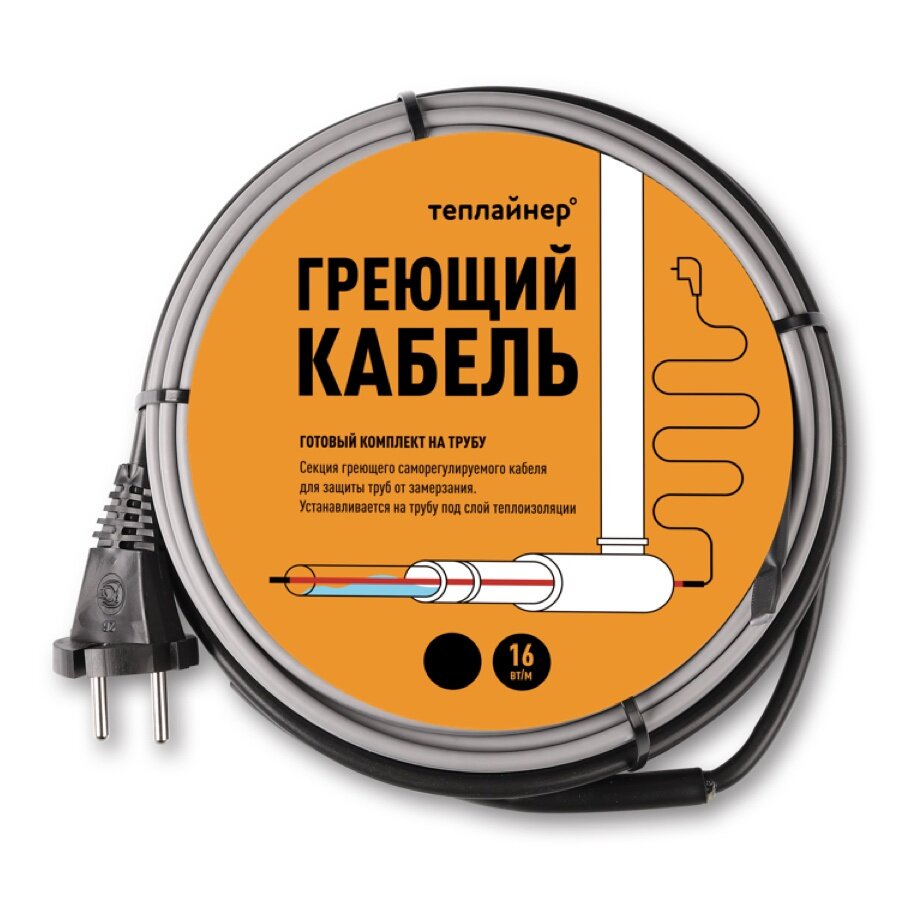 Греющий кабель саморегулирующийся на трубу 9 метров - 144 Вт. Теплайнер. Комплект.