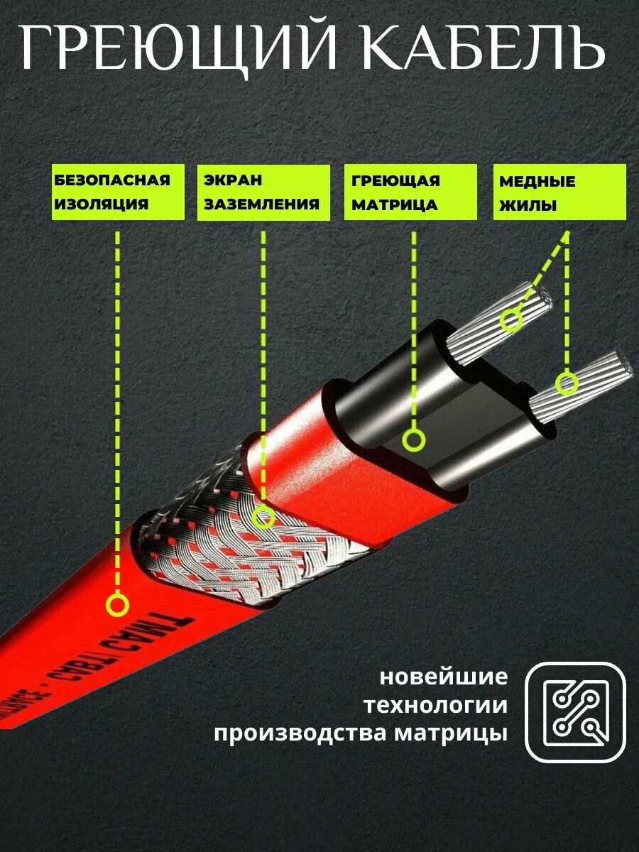Саморегулирующийся греющий кабель в трубу готовый комплект 15 метров