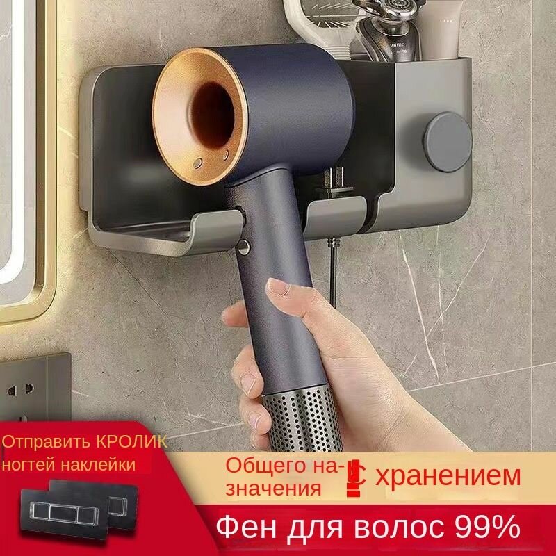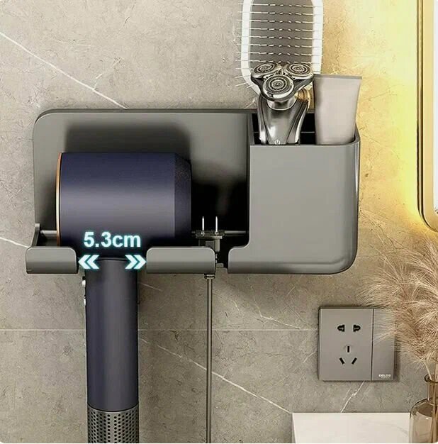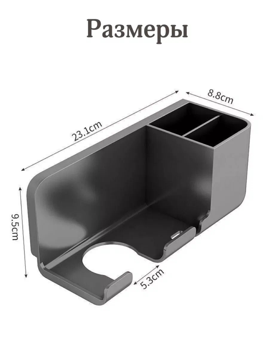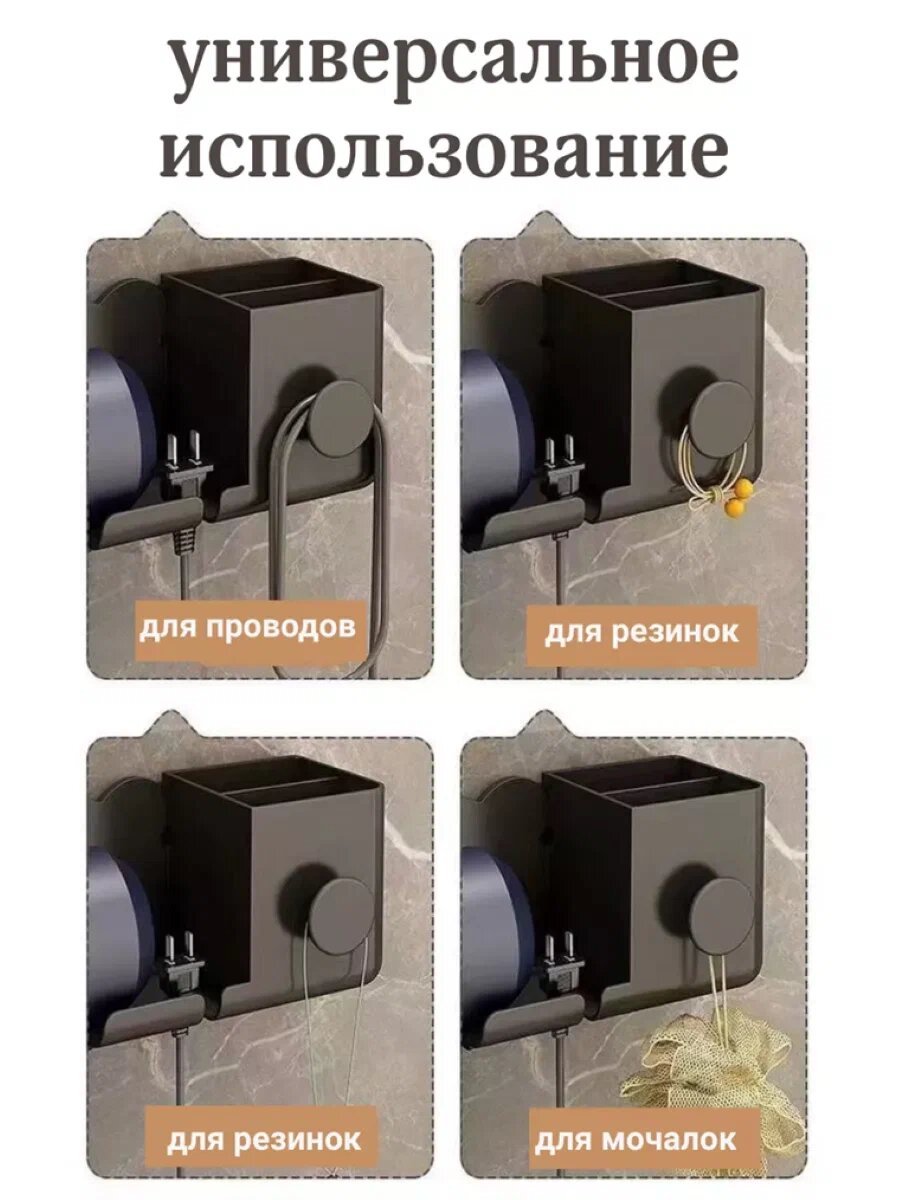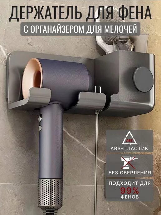 Держатель для фена с органайзером, серый, пластик, 22х9х9 см, настенный, самоклеящийся интересное: