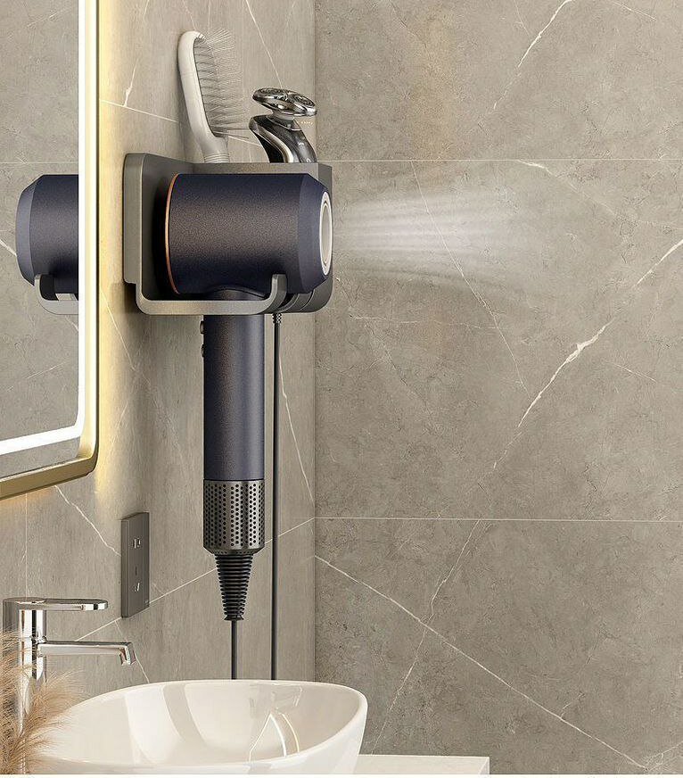 Держатель для фена без сверления в ванную комнату Серая