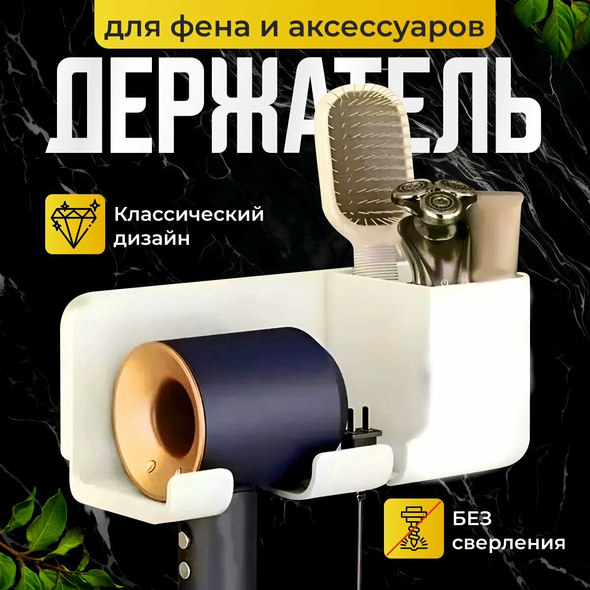 Держатель для фена с органайзером, черный