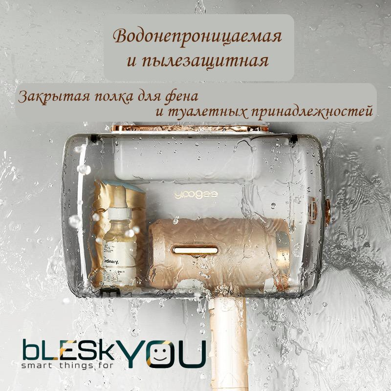 СохранитьДержатель, полка для фена закрытая bLESkYOU, БЕЛАЯ С золотыми вставками, без сверления. интересное: