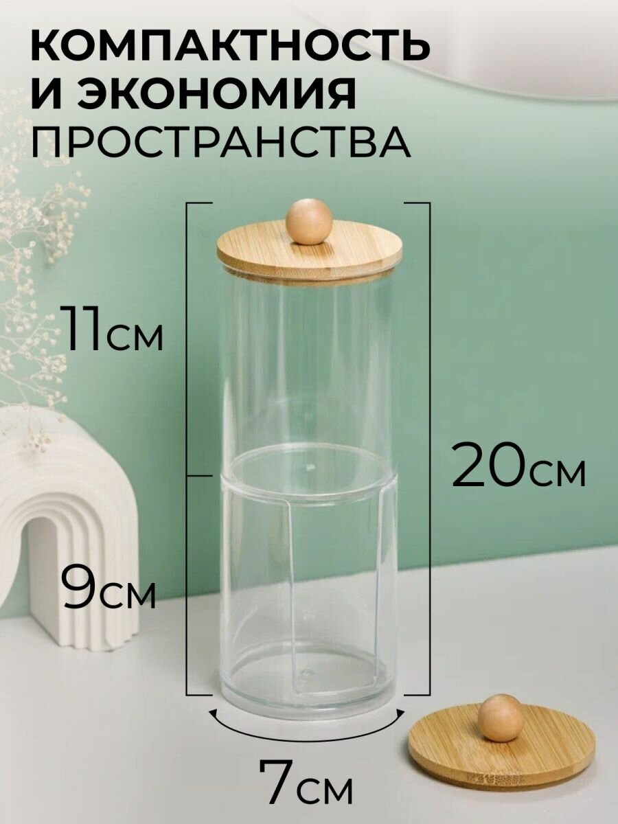 Органайзер для ватных палочек и дисков "Nytta", прозрачный, двойной, объем 30мл