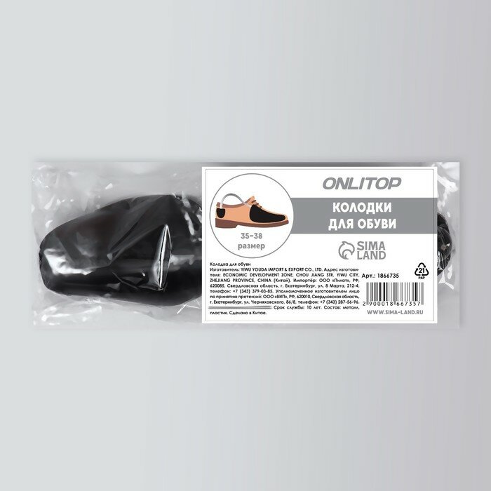 Колодки ONLITOP, для сохранения формы обуви, металл/пластик, 35-39 размер, 2шт, черные
