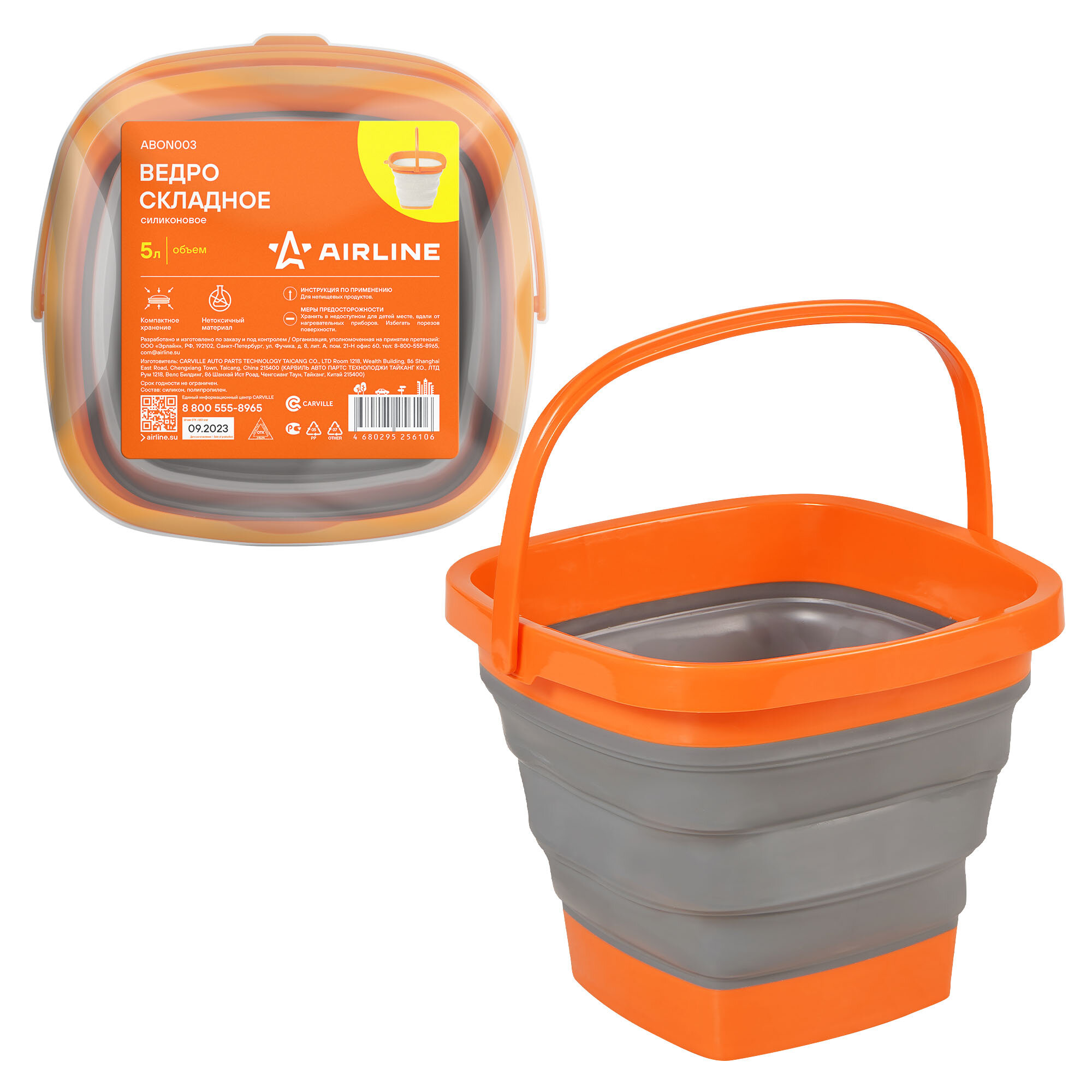 Ведро складное силиконовое 5л ABON003 AIRLINE интересное: