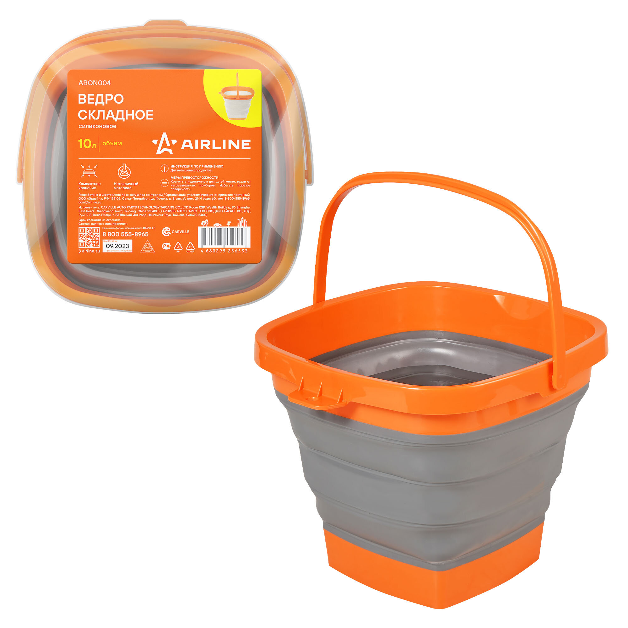 Ведро складное силиконовое 10л ABON004 AIRLINE интересное: