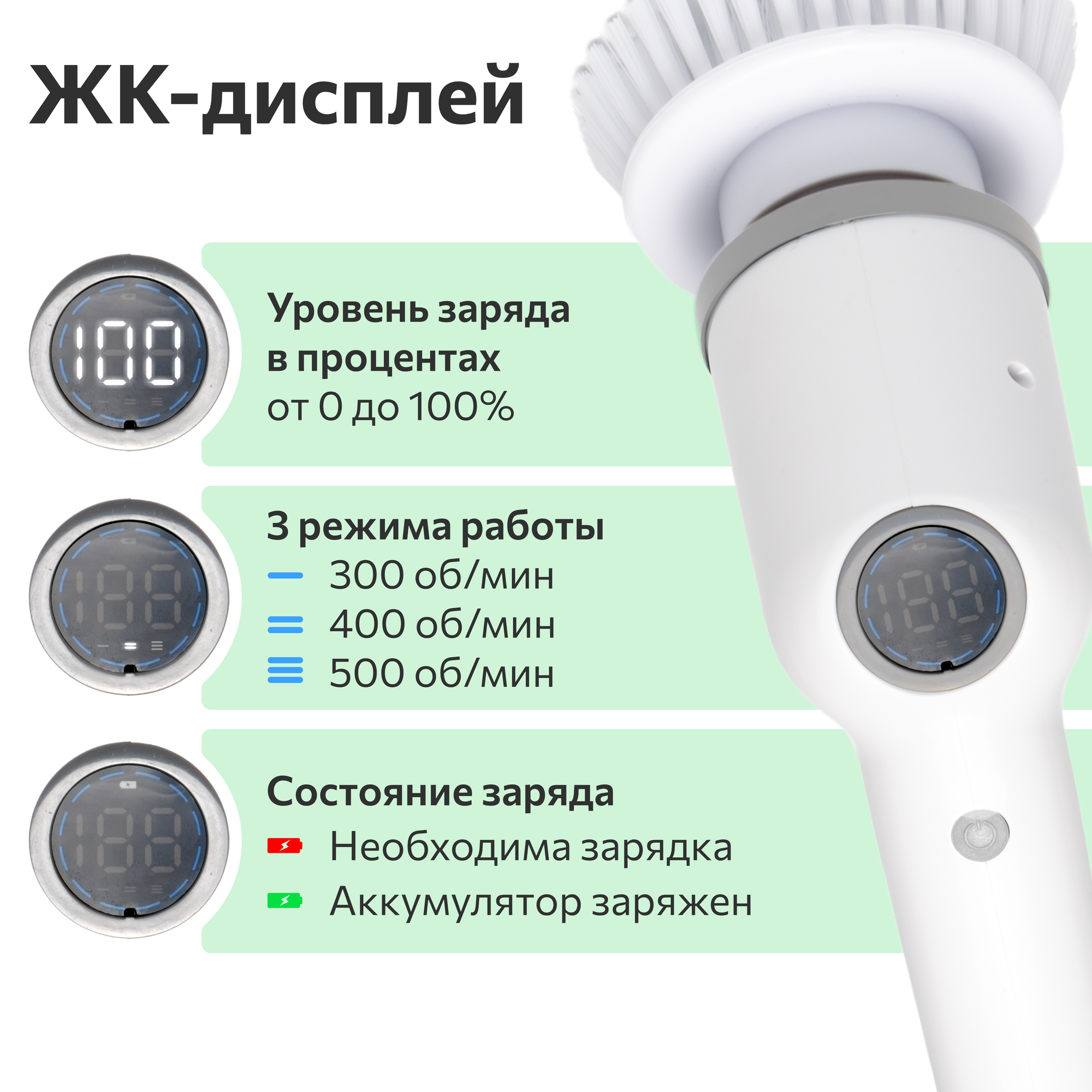 Купить Электрическая щетка Fullbuy для уборки и чистки дома и ванны с набором сменных насадок