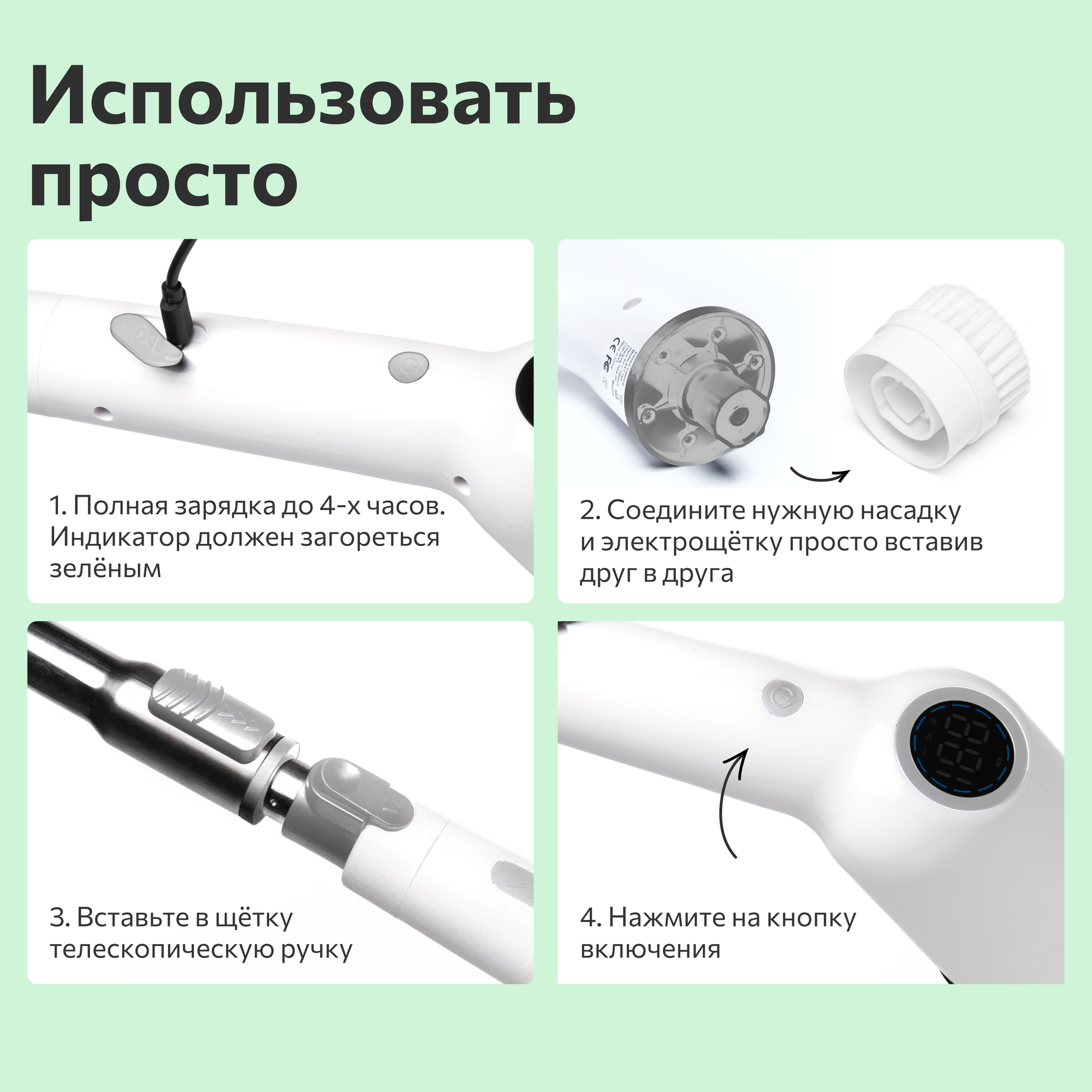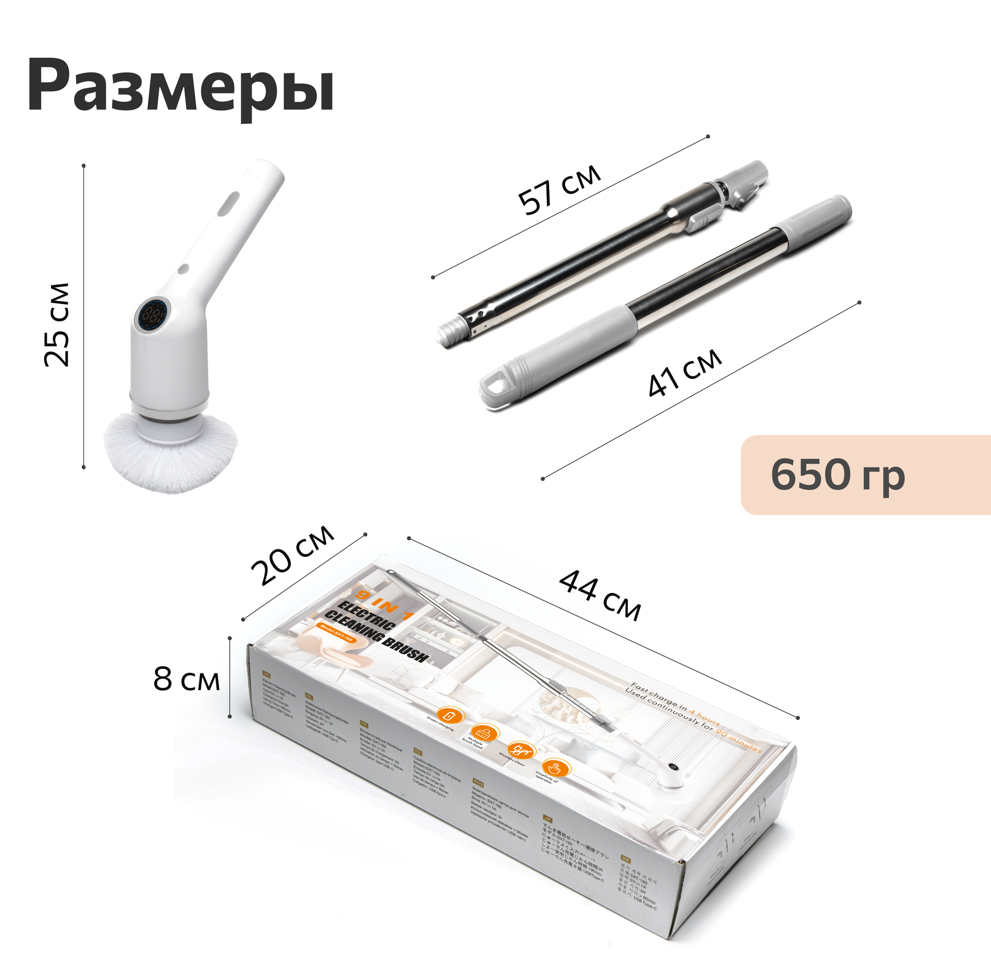 Электрическая щетка для уборки с набором 9 насадок поможет с легкостью убраться дома. Щетка электрическая имеет универсальный держатель - длинная выдвижная ручка